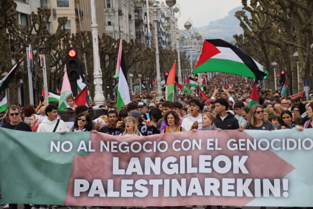 Tras el éxito de la jornada de hoy, los sindicatos convocantes instan a las instituciones públicas (Gobiernos autonómicos, locales, universidades), a las asociaciones empresariales (Confebask y CEN), así como al conjunto de las empresas, a suspender toda relación institucional y comercial con Israel: no se puede hacer negocio a costa de un genocidio.