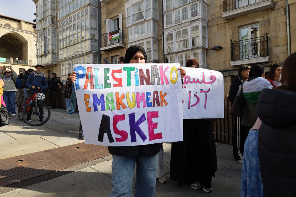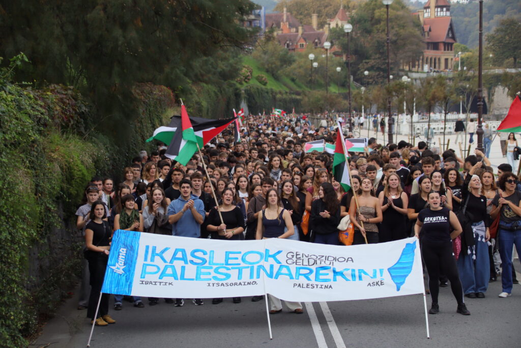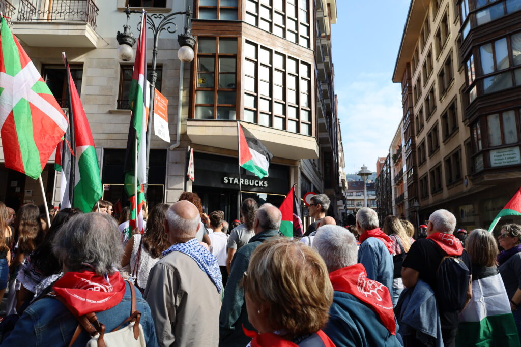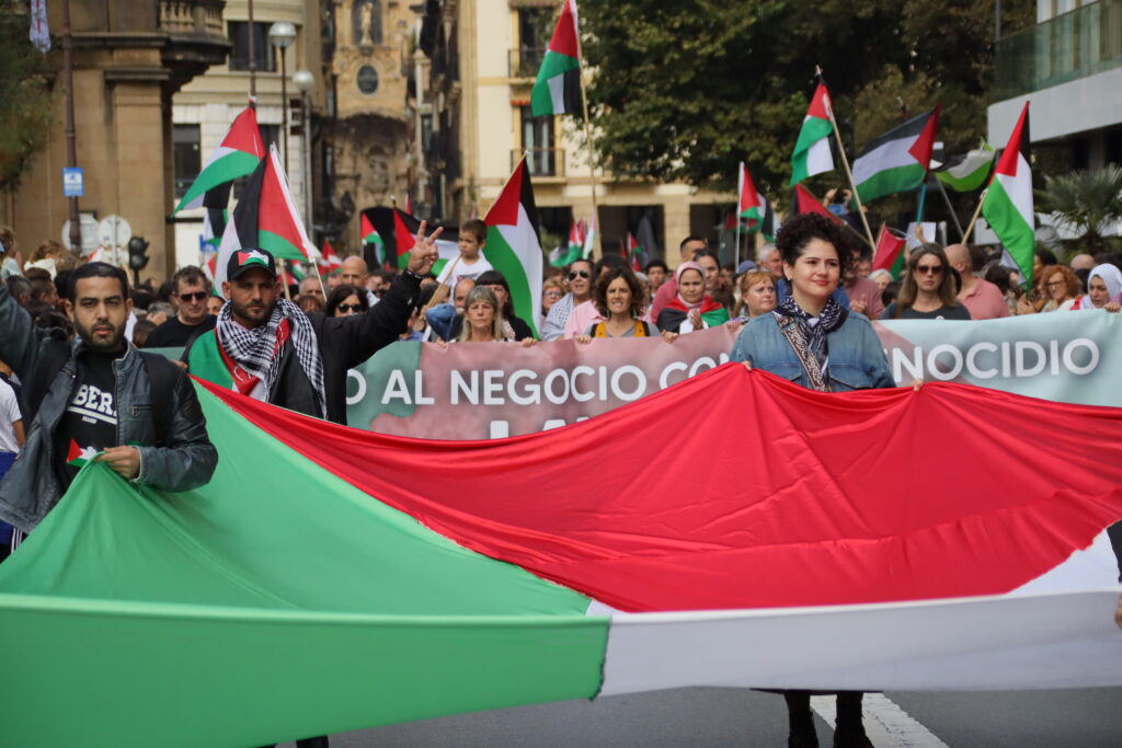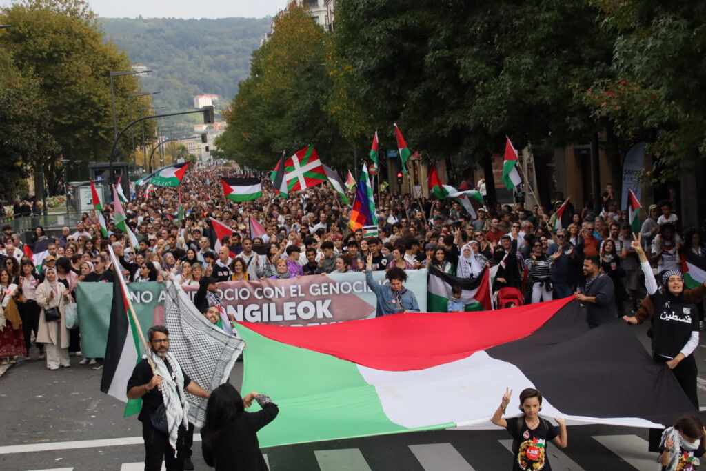 Al mediodía más de 110.000 personas han participado en las manifestaciones realizadas en las cuatro capitales, colapsando el recorrido: más de 55.000 en Bilbo, 18.000 en Donostia, más de 22.000 en Gasteiz y 15.000 en Iruñea. Se trata de la mayor movilización social por Palestina realizada hasta la fecha y una de las mayores registradas en Euskal Herria.