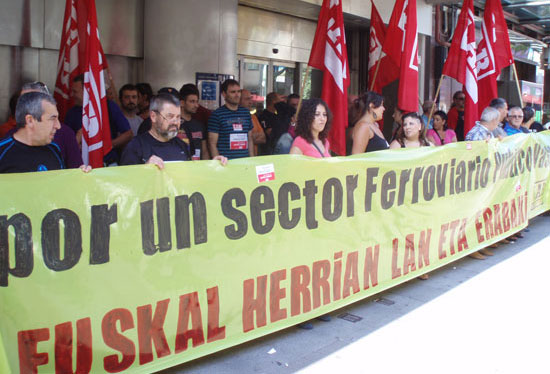 Espainiako Gobernuak trenbide-alorra pribatizatu eta liberalizatuko duela iragarri du eta albiste horiek langileak eta jendartea larritu ditu. Herri honi eragiten dioten gaiak hemen erabaki behar direla kontuan hartuta, argi eta garbi adierazten dugu Hego Euskal Herrian lan egiten dugunez, hemen hartu behar ditugula herri honen garapenean hain funtsezko eta hain estrategikoak diren trenbide –egitura eta azpiegiturei buruzko erabakiak. Gaur inoiz baino garrantzitsuagoa dugu eremu sozio-ekonomikoan tresna eta baliabide guztiak berreskuratzea, Euskal Herrian erabaki ahal izateko zer nolako zerbitzu publikoak behar ditugun eta lan harremanetarako eta babes sozialeko eredua propioa lortzeko.