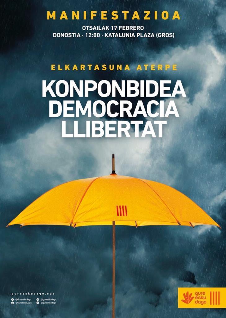 Erabakitzeko eskubidearen aldeko herri dinamikak mobilizazio desberdinak iragarri ditu egunotarako. Alde batetik otsailaren 12rako, elkarretaratzeak egingo ditu Hego Euskal Herriko lau hiriburuetan eta hainbat herritan, Kataluniako agintari politikoen kontrako epaiketa dela eta. Beste aldetik, otsailaren 17an, manifestaziora deitu du Donostian, Kataluniarekin elkartasunean. Martxa 12:00etan abiatuko da Groseko Katalunia plazatik, Bulebarreruntz. LABek bat egin du mobilizazioekin, eta parte hartzeko deia egin die langile guztiei.