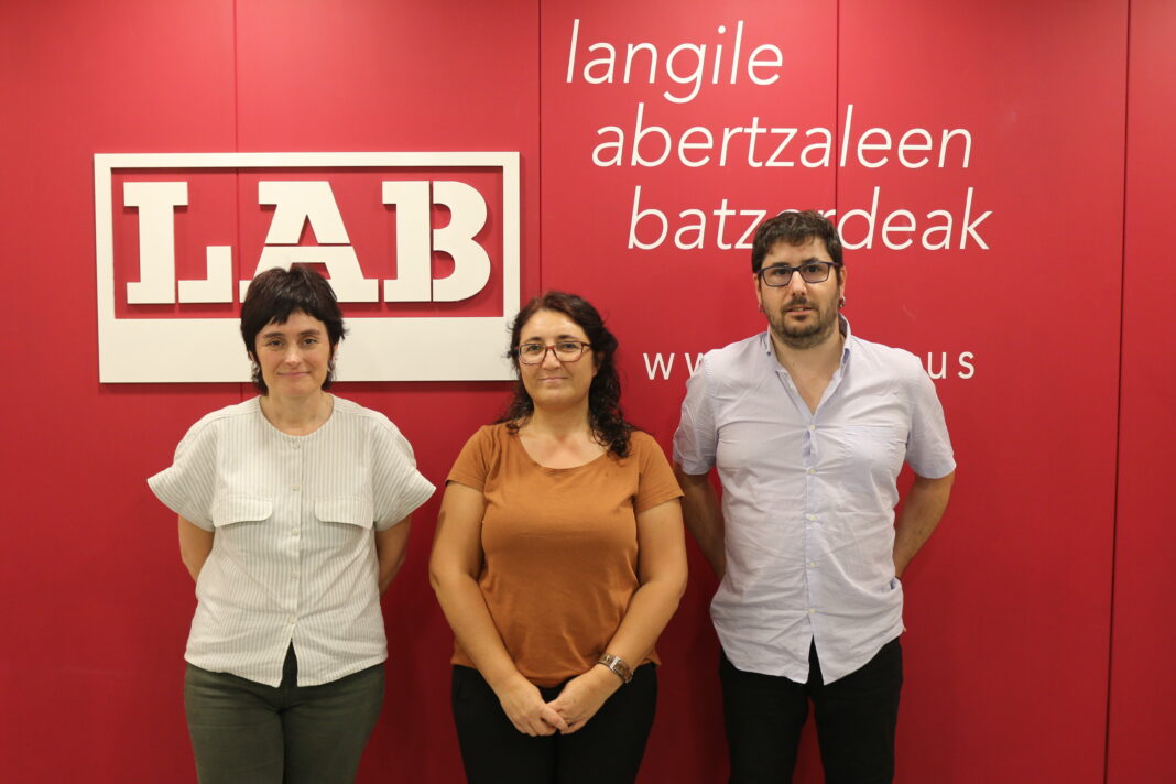 La coordinadora general de LAB, Garbiñe Aranburu, y el secretario de relaciones internacionales, Koldo Sáenz, se han reunido en Donostia con Ozlem Tanrikulu, representante del Consejo Nacional Kurdo.
