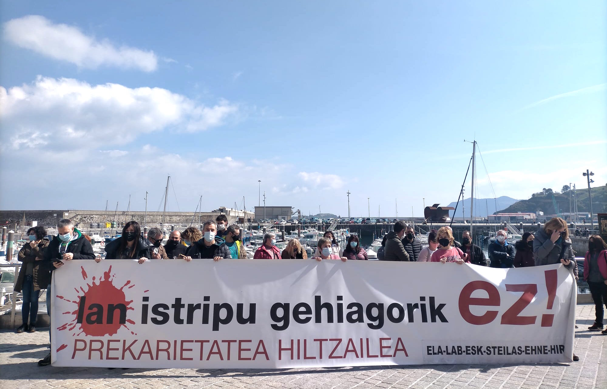 Un trabajador del barco que presta asistencia a la plataforma La Gaviota de la costa de Bermeo, gestionada por la empresa Enagás, falleció la pasada semana al caer al mar desde la embarcación de apoyo. Hemos denunciado esta muerte laboral hoy en Bermeo, en el puerto, a convocatoria de la mayoría sindical vasca. Al menos 13 trabajadores han muerto en lo que va de año en Euskal Herria. El de Bermeo no fue el último accidente laboral mortal, ya que el fin de semana falleció un transportista en Zuasti, tras incendiarse el camión cuando descansaba en la zona de servicio de la autopista, sita en el citado municipio.