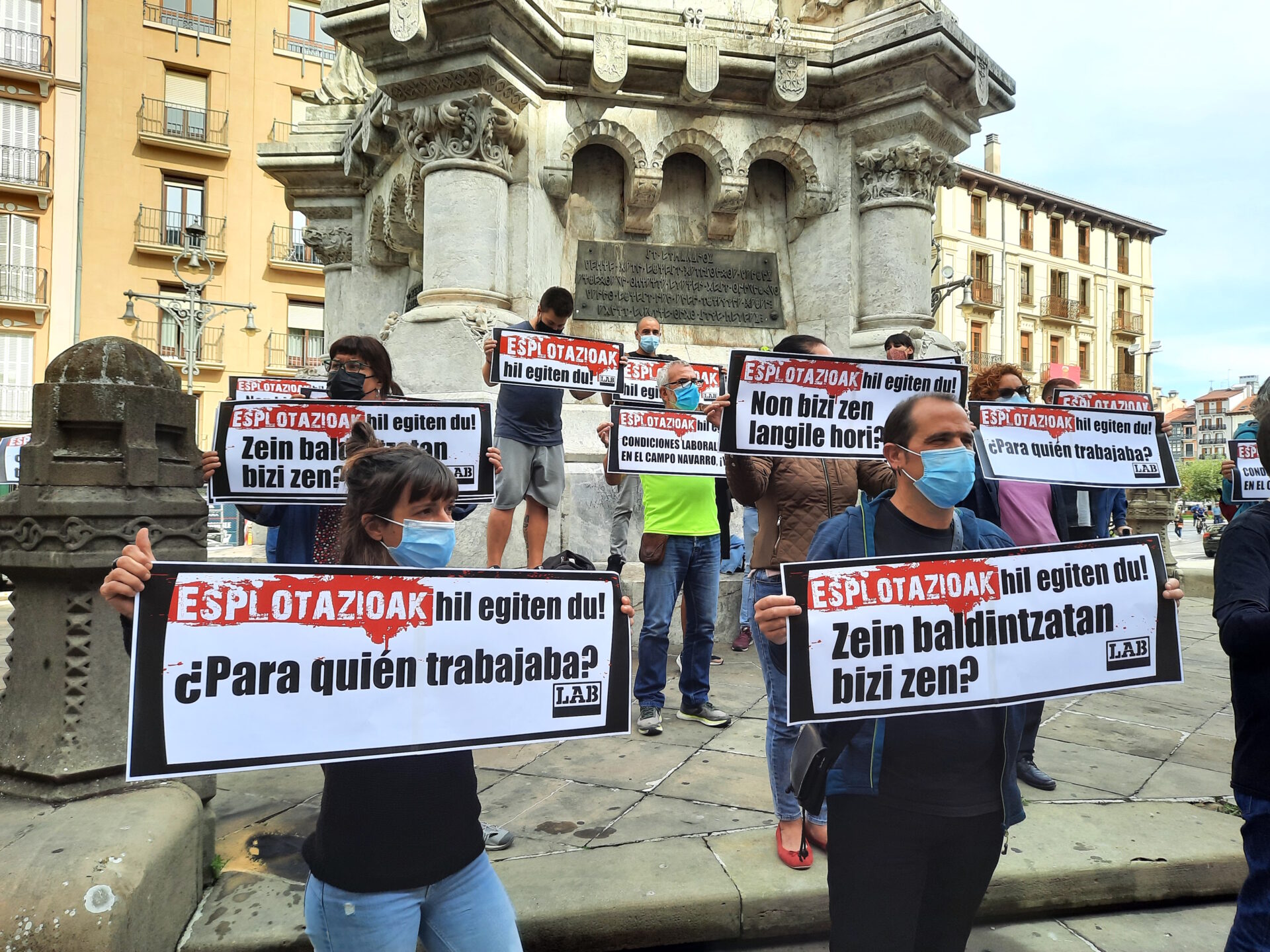 El sindicato LAB se ha concentrado hoy en Pamplona, ante la sede de la Inspección de Trabajo, para denunciar la muerte de un trabajador migrante de 62 años que tuvo lugar el pasado 15 de septiembre en Carcastillo, y para exigir que se pongan en marcha medidas inmediatas para poner fin a las situaciones de explotación y precariedad en el medio rural de Navarra.