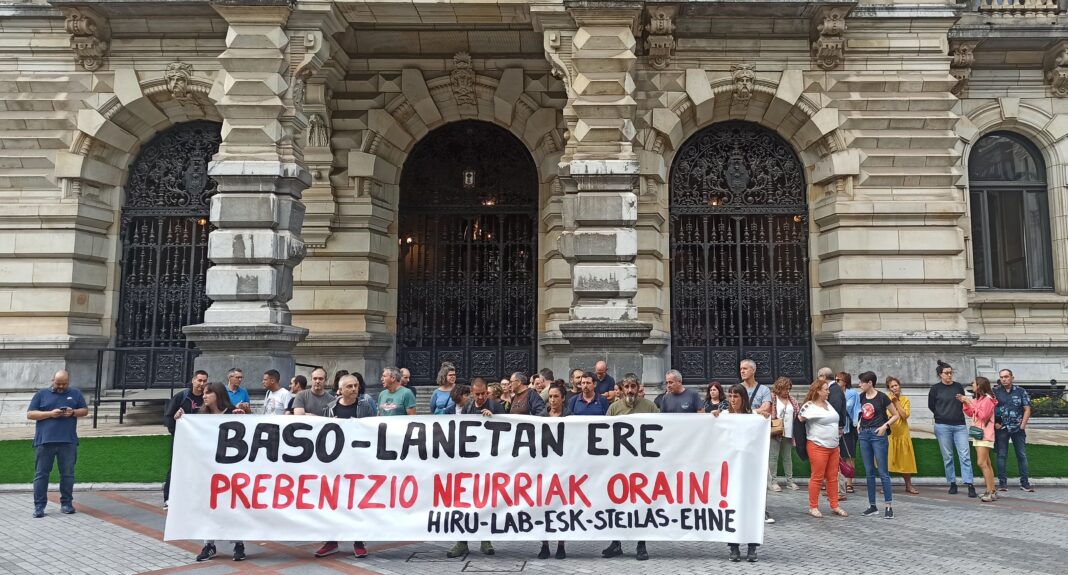Representantes de LAB, junto con los y las de los sindicatos ESK, STEILAS, HIRU y EHNE, nos hemos concentrado en Bilbo, delante de la Diputación Foral de Bizkaia, para denunciar el último accidente laboral mortal ocurrido en Elorrio. En la movilización, hemos exigido a la Administración y a las instituciones que tomen medidas para garantizar la seguridad laboral de las y los trabajadores que realizan labores de explotación forestal.