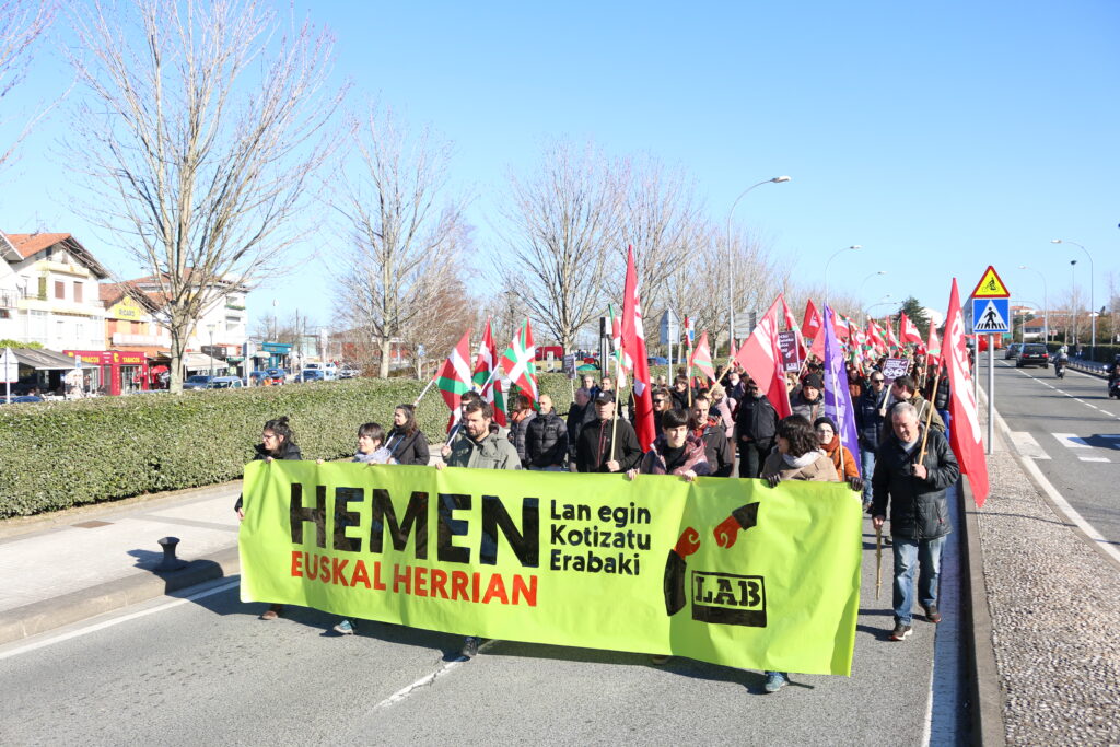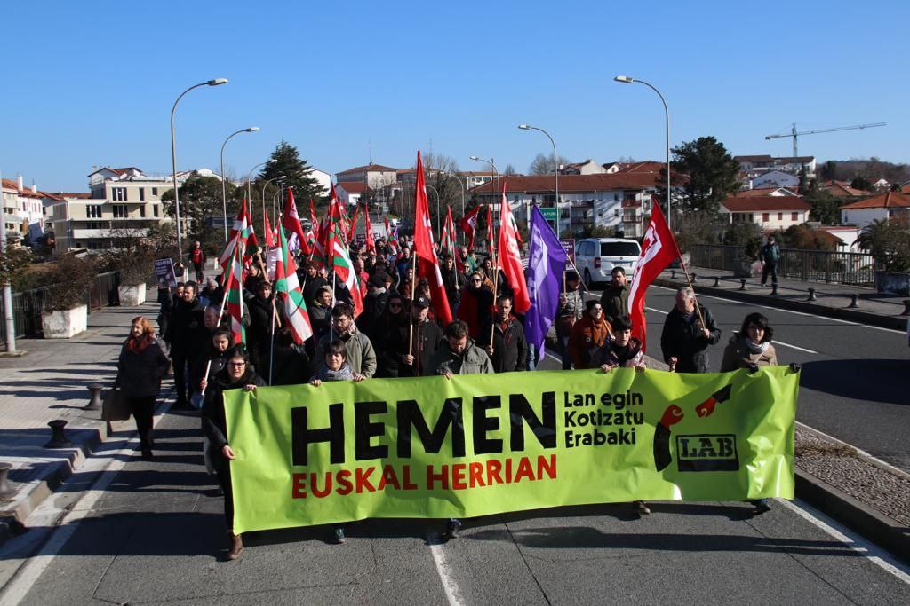 Hoy hemos denunciado las reformas de pensiones que tienen previsto llevar a cabo tanto el Gobierno francés como el español y ha reivindicado un sistema propio que garantice una pensión pública digna a todas y todos los trabajadores vascos, en una movilización que ha partido de Hendaia y ha concluido en Irun.