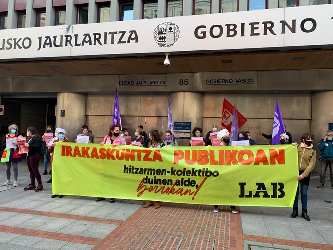 Por su parte, en el contexto de la dinámica de movilizaciones y huelgas, la mesa negociadora del Consorcio Haurreskolak se ha convocado una vez, pero sin contenido. Mientras tanto, no se está cumpliendo el convenio ni el acuerdo firmado por LAB en 2018. Además, en un momento en el que la tasa de natalidad está descendiendo, se cuestiona su viabilidad, en lugar de dar pasos hacia la gratuidad de este servicio educativo, tal y como pidió el Parlamento.