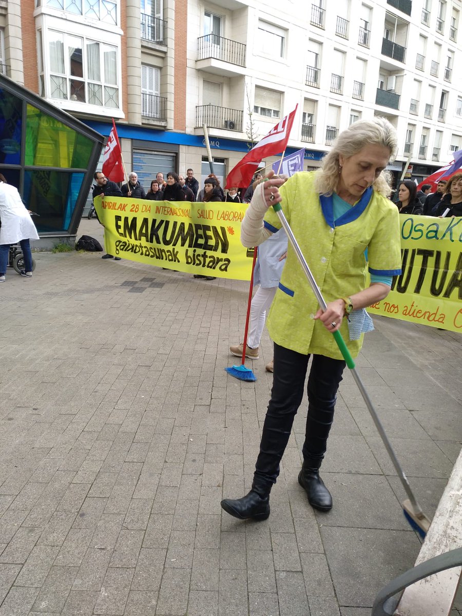 En vísperas del Día Internacional de la Salud en el Trabajo, nos hemos movilizado en las cuatro capitales de Hego Euskal Herria para denunciar que la salud laboral de los y las trabajadoras está empeorando año tras año. Este año hemos querido hacer visibles las enfermedades que sufren las mujeres, para dar a conocer las consecuencias en la salud de la falta de igualdad ques sufren tanto en sus puestos de trabajo como a nivel social. Así, la secretaria general de LAB Garbiñe Aranburu ha tomado la palabra en la movilización de Donostia, ante la sede del Gobierno Vasco y ha señalado cuáles son las medidas necesarias; entre otras, hacer visibles los problemas ergonómicos, psicosociales y químicos, entre otros.