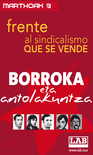 Desde LAB entendemos que es ese el modelo: la organización como elemento fundamental, la lucha como instrumento dinamizador y la activación social como cauce determinante. Esa es nuestra propuesta: organizarnos y luchar conjuntamente, contra la precariedad, contra la injusticia social, contra el capitalismo, por ser dueños y dueñas de nuestro futuro en la construcción de una Euskal Herria independiente y socialista.