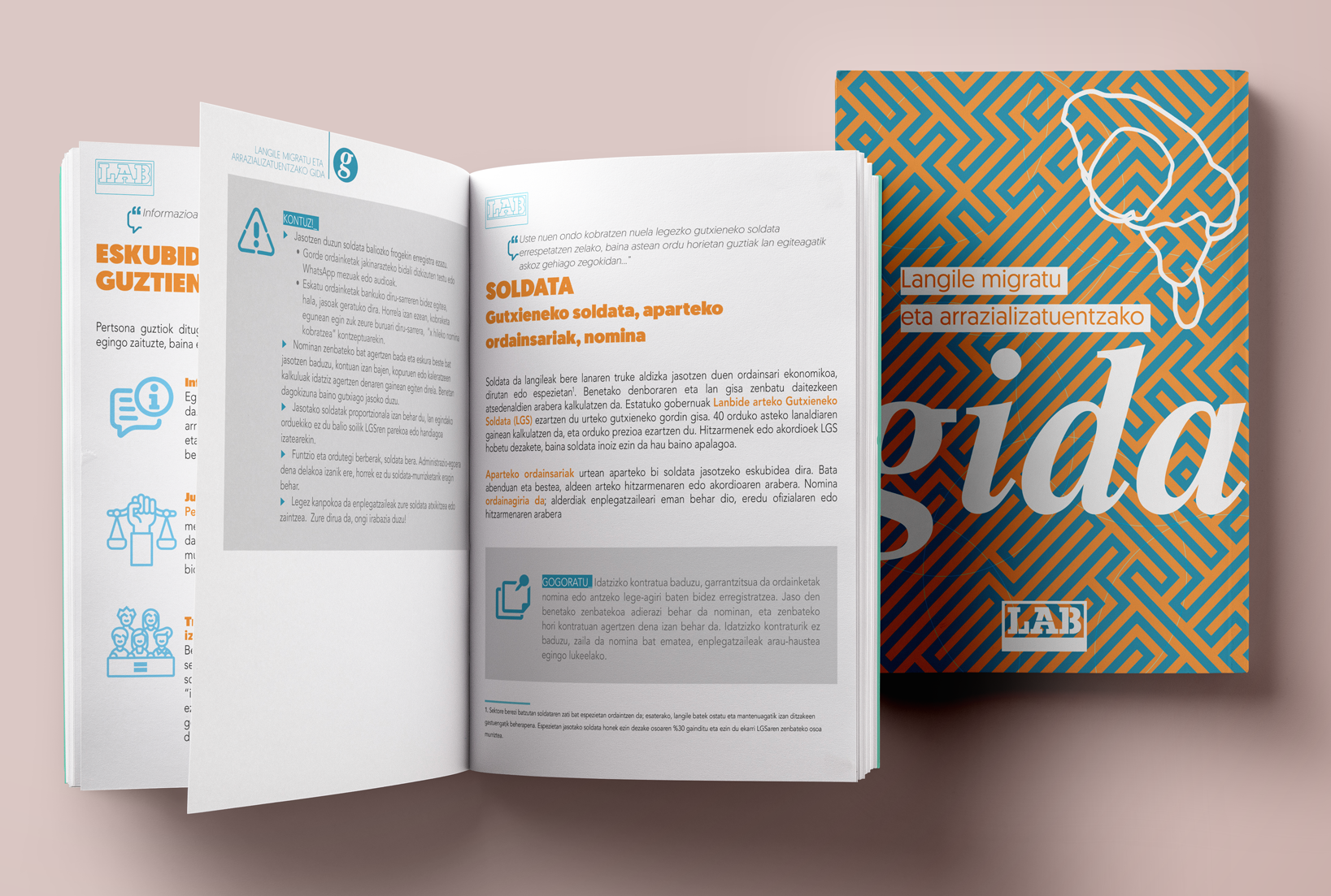 La GUÍA está disponible en las sedes de LAB en Hego Euskal Herria y además de utilizarla en las sesiones de formación dirigidas a trabajadores migrados y racializados, se la trasladaremos a los agentes que están trabajando con ellos y ellas.