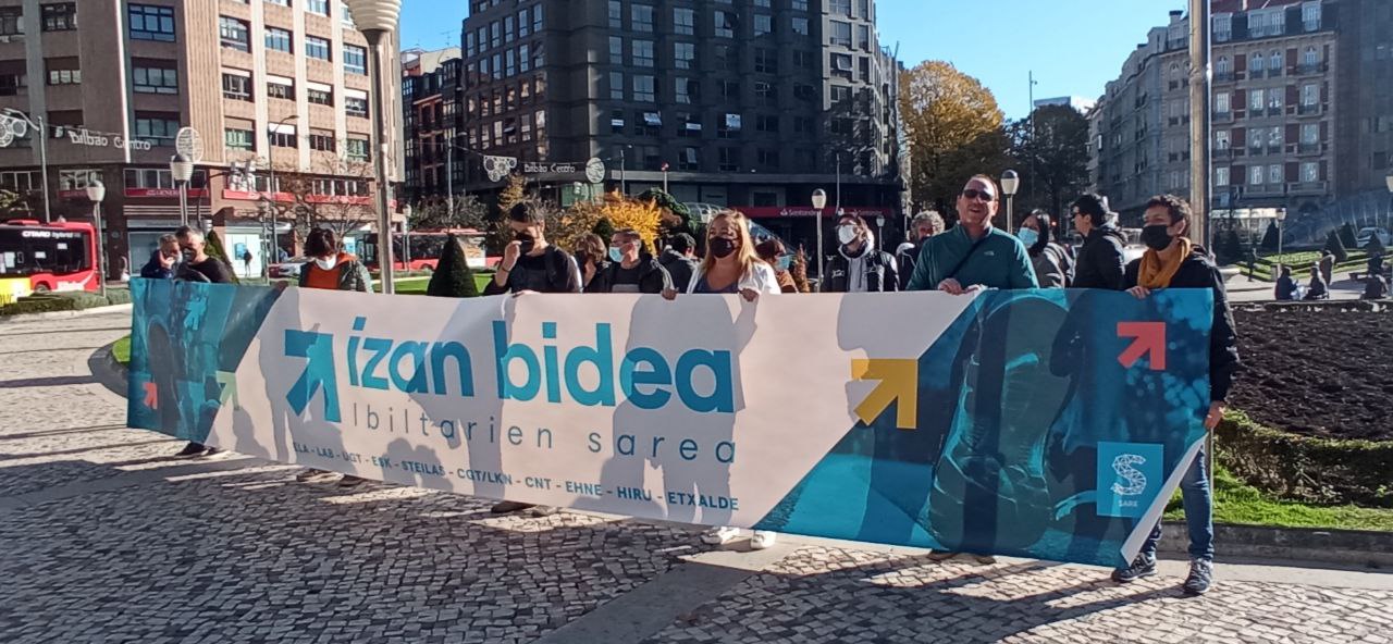 Los sindicatos LAB, ELA, UGT, ESK, Steilas, CGT, CNT, EHNE, HIRU y Etxalde nos hemos concentrado dentro de la iniciativa Izan Bidea de SARE por los derechos de los presos y presas vascas. Se trata de una concentración que realizamos el tercer viernes de cada mes en Bilbo. Así, hemos vuelto a reclamar que se dé una solución urgente al tema de las y los presos.
