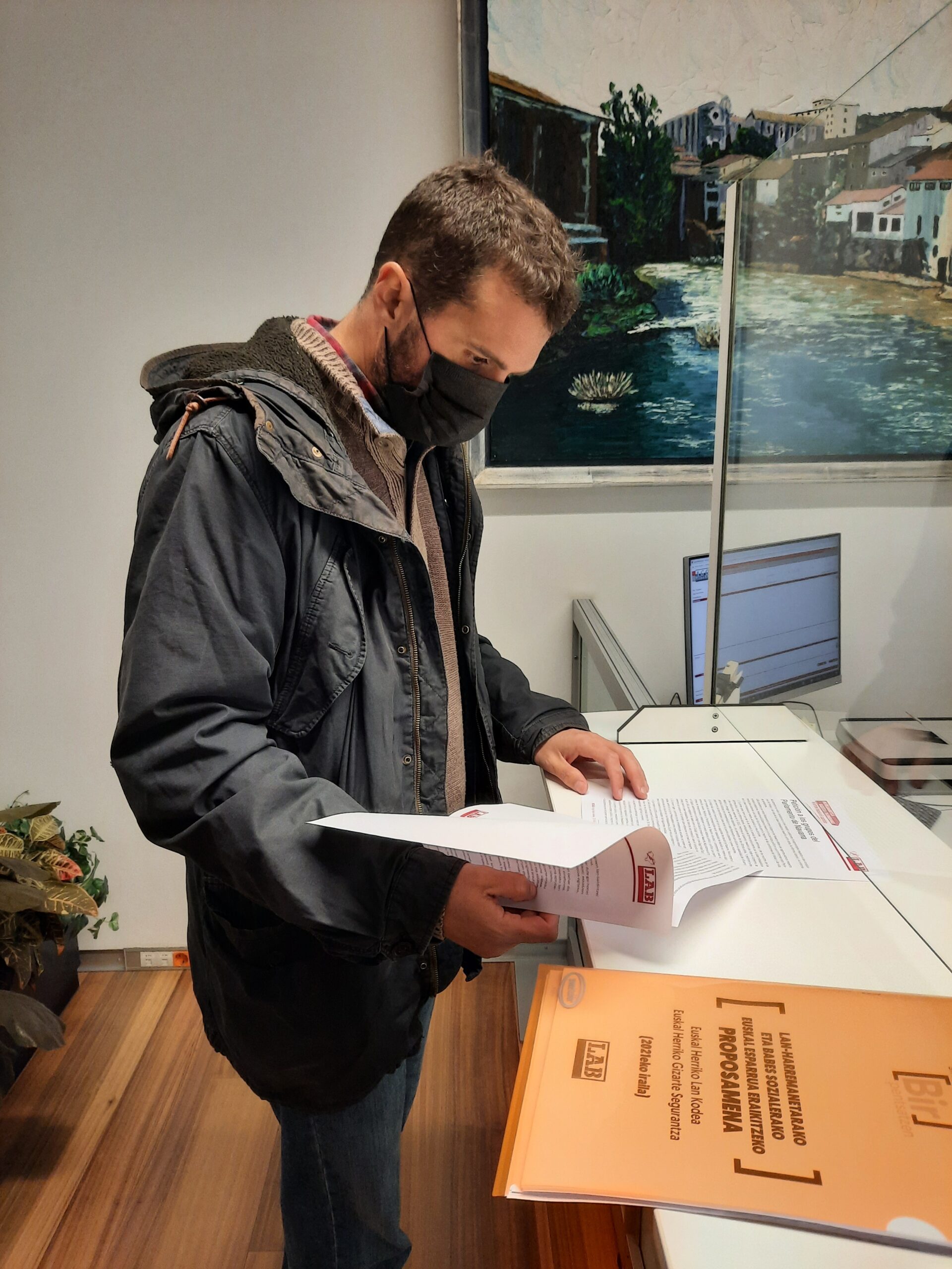 En LAB acabamos de confeccionar una propuesta integral de Código Laboral y ley propia de Seguridad Social que hemos registrado hoy en el Parlamento de Nafarroa, tal y como hicimos hace dos semanas en el Parlamento de Gasteiz, esta vez de la mano de Igor Arroyo, secretario general adjunto del sindicato.