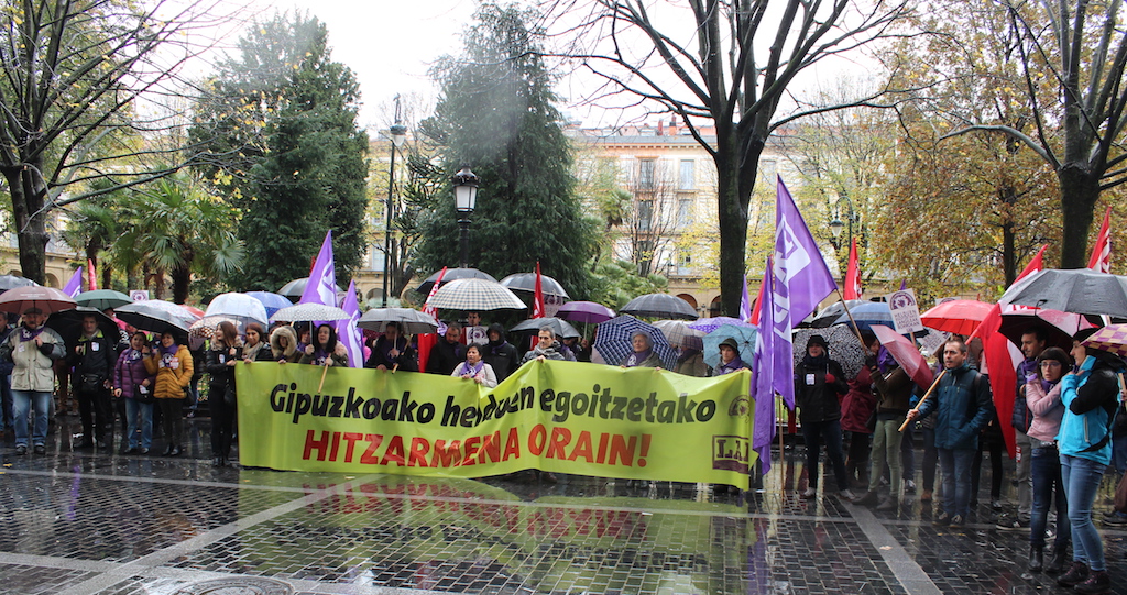 Servicio de ayuda a domicilio en Donostia. Se encuentran en huelga indefinida desde el 22 de octubre. En estos momentos, han suspendido la huelga de forma temporal hasta que se realice el concurso público. No hay convenio provincial en Gipuzkoa y las y los trabajadores del servicio de ayuda a domicilio de Gipuzkoa tienen la negociación bloqueada. Cuentan con jornadas parciales impuestas, flexibilidad, el tiempo de desplazamiento de un domicilio a otro recae sobre las y los trabajadores, no se les aplican medidas de prevención y no tienen ni siquiera planes de formación.