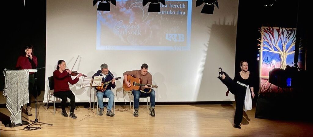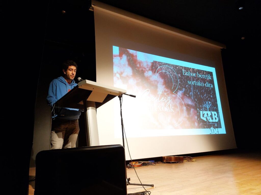 LAB está celebrando su aniversario el presente 2024 y esto también ha tenido su espacio en el acto realizado en el Centro Cívico Aldabe. Así, el artista Zirika y la coordinadora general Garbiñe Aranburu han mostrado la obra de arte del aniversario. La misma representa un árbol con las raíces profundas y las ramas abiertas. De hecho, el lema del 50 aniversario de LAB es Zabaltzen.