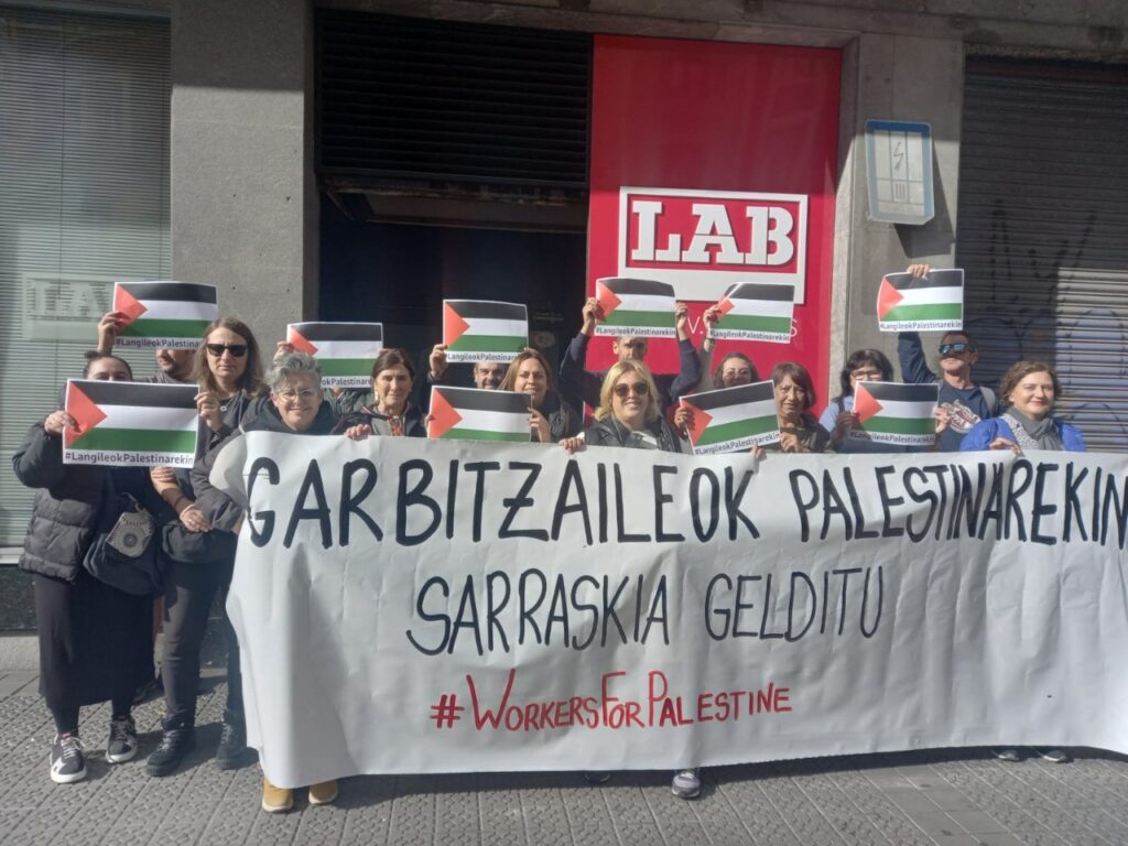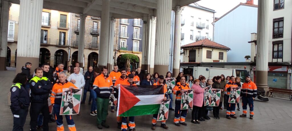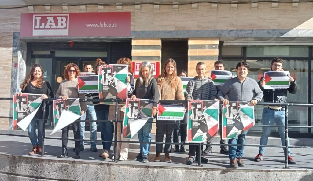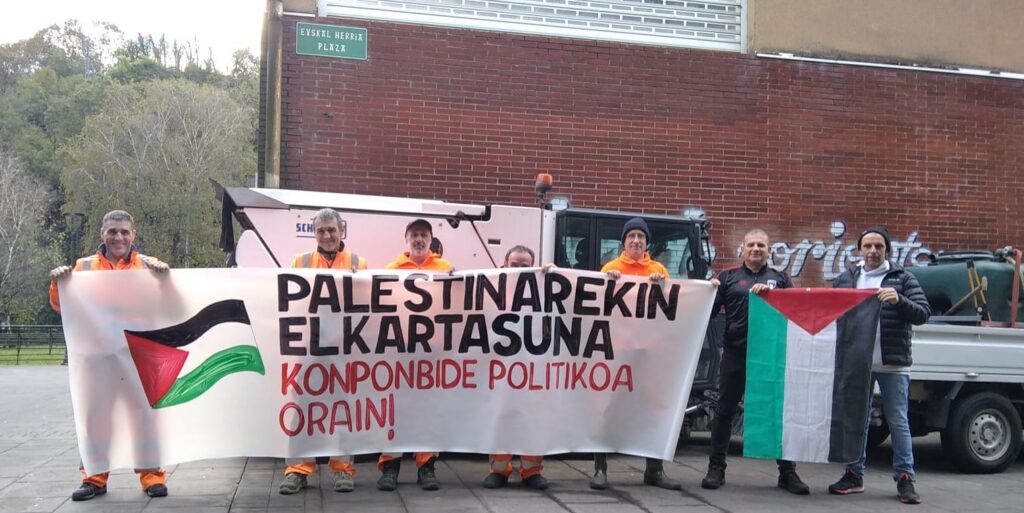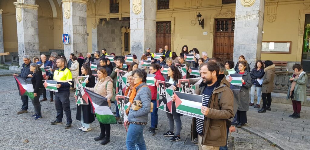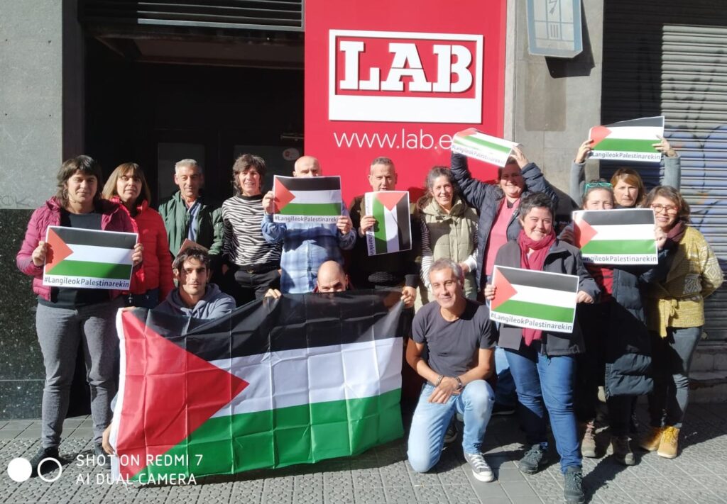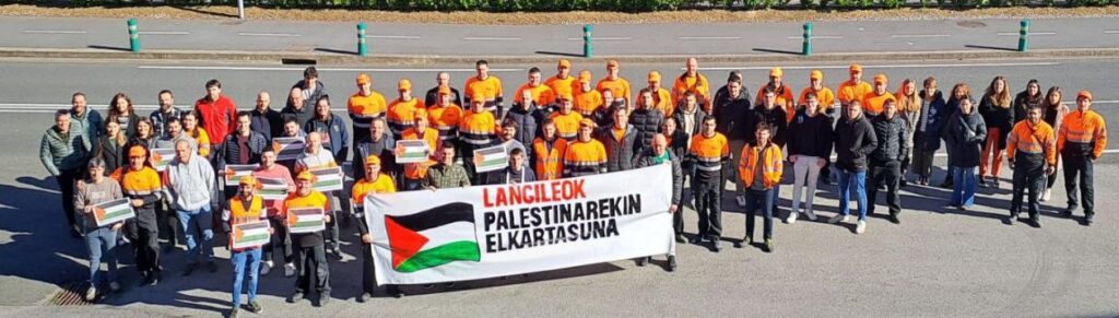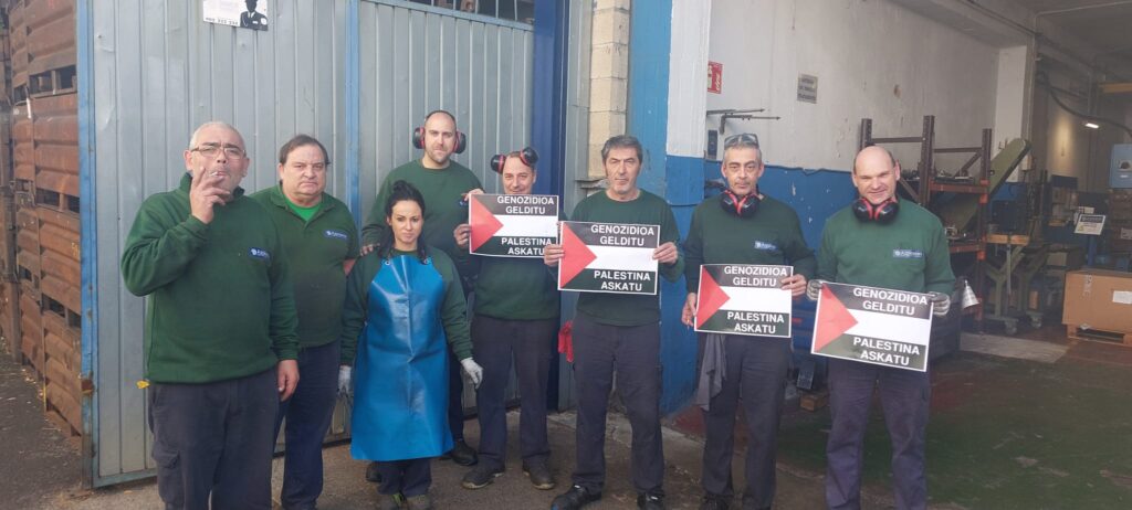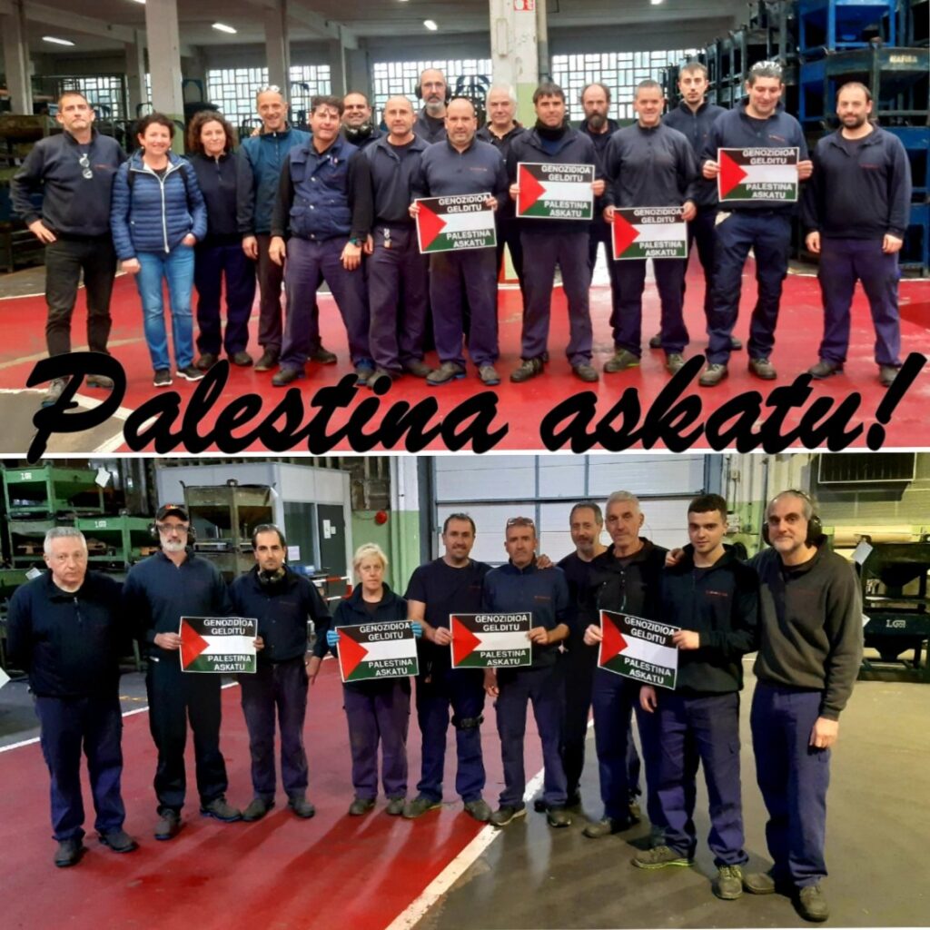 Todos los sindicatos nos hemos sumado a las movilizaciones convocadas para hoy a las 19:00 a las puertas de los ayuntamientos por la iniciativa Gernika-Palestina. Además, al mediodía hemos llevado a cabo movilizaciones en diferentes centros de trabajo y educativos. En las movilizaciones que llevamos a cabo entre varios sindicatos en Iruñea y Bilbo cuando comenzó la última masacre contra Gaza y el Pueblo Palestino en general decíamos lo siguiente: