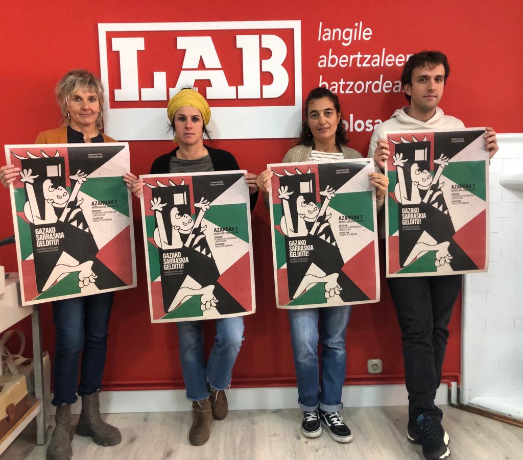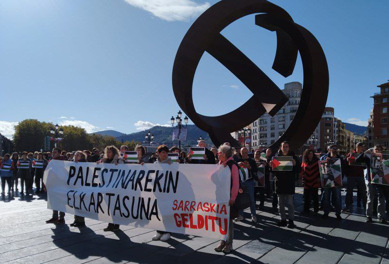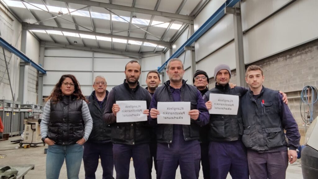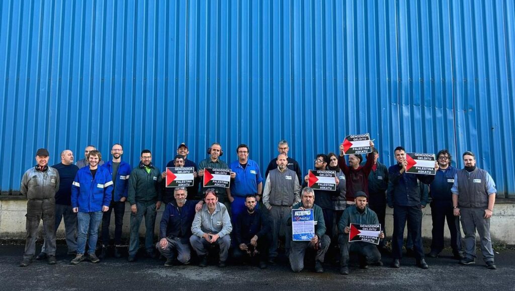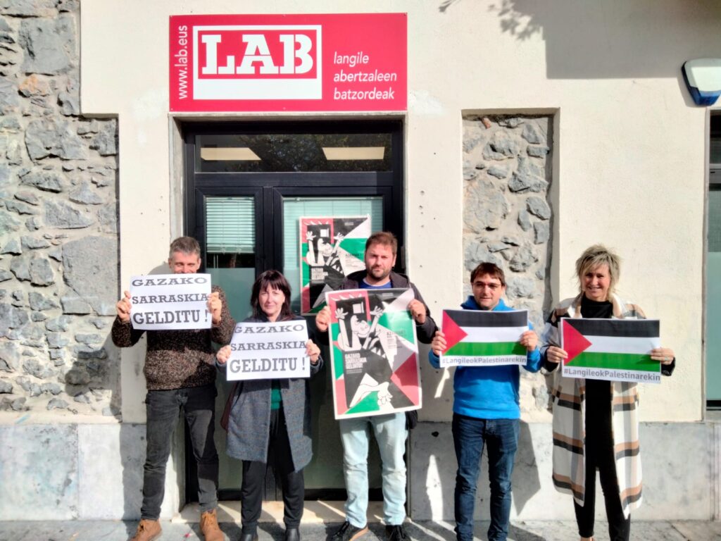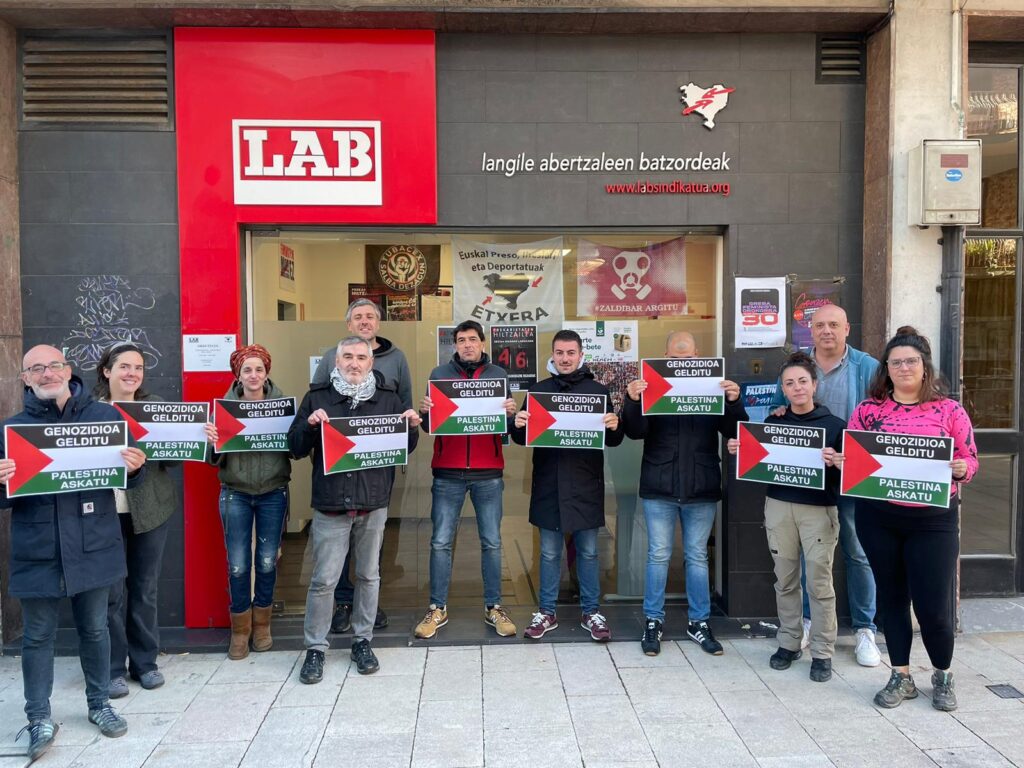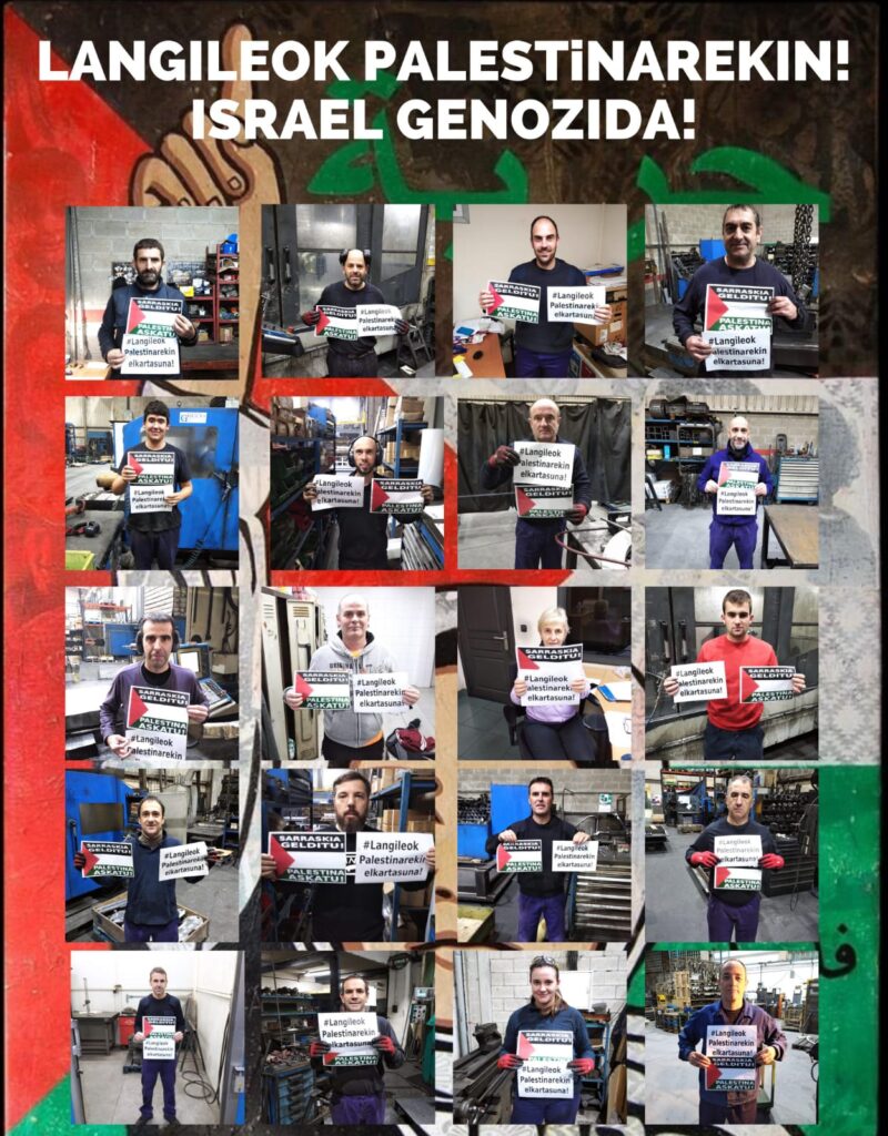 Todos los sindicatos nos hemos sumado a las movilizaciones convocadas para hoy a las 19:00 a las puertas de los ayuntamientos por la iniciativa Gernika-Palestina. Además, al mediodía hemos llevado a cabo movilizaciones en diferentes centros de trabajo y educativos. En las movilizaciones que llevamos a cabo entre varios sindicatos en Iruñea y Bilbo cuando comenzó la última masacre contra Gaza y el Pueblo Palestino en general decíamos lo siguiente: