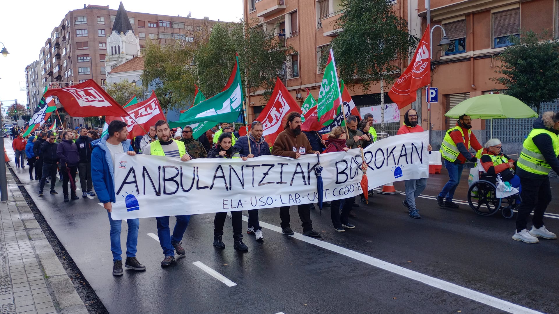 Además de en otros lugares, hoy se han manifestado en Bizkaia, desde el centro de ambulancias La Pau, en el barrio bilbaíno de Zorroza, hasta el hospital de Cruces, en Barakaldo.
