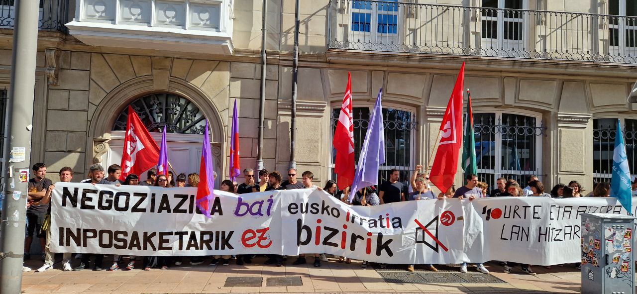 Se plantan ante las últimas imposiciones de la dirección, y así lo volverán a hacer el 26 de septiembre y el 19 de octubre. Reivindican una negociación real para dignificar las condiciones laborales, ya que la empresa ha realizado varias modificaciones unilaterales en detrimento de los trabajadores. La convocatoria ha tenido un amplio seguimiento y en el día de hoy sólo están en marcha los servicios mínimos. Los y las huelguistas se han concentrado frente al parlamento de Gasteiz.