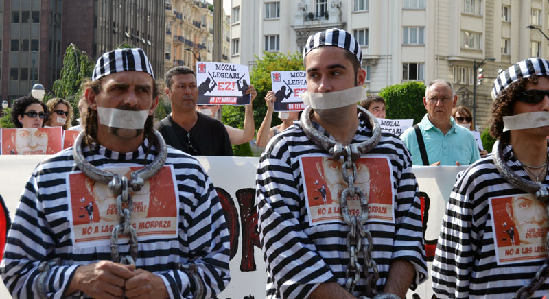 Urtebete pasatu da Mozal Legea indarrean sartu zenetik, eta Herritarren Kriminalizazioaren aurkako Plataformak mobilizazioa egin du gaur goizean Bilbon, Espainiako Gobernuaren ordezkaritzaren aurrean, Plaza Eliptikoan. Deitzaileek adierazi dute “batetik, eskubide sozialak lapurtzen dizkigute, bestetik eskubide horien alde borrokatzeko eskubidea kentzen digute”.