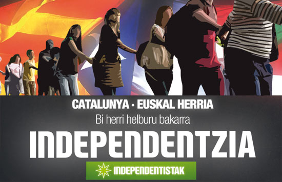 Independentistak Sareak deituta, “CATALUNYA-EUSKAL HERRIA, bi herri helburu bakarra, INDEPENDENTZIA” lemapean bihar larunbata, arratsaldeko 19.00etan Euskal Herriko hiriburu desberdinetan egingo diren ekitaldiei atxikimendua eman nahi die LAB sindikatuak eta bertan parte hartzeko deia egiten die euskal herritarrei orohar eta langileriari bereziki, Kataluniar herria egiten ari den prozesu independentistarekiko elkartasuna adierazi eta Euskal Herriaren independentzia aldarrikatzeko helburuz. Arratsaldeko 19.00etan Iruñean, Gasteizen, Donostian eta Bilbon egingo diren ekitaldietan LABeko ordezkaritza zabala izango da, tartean, zuzendaritzako hainbat kide.
