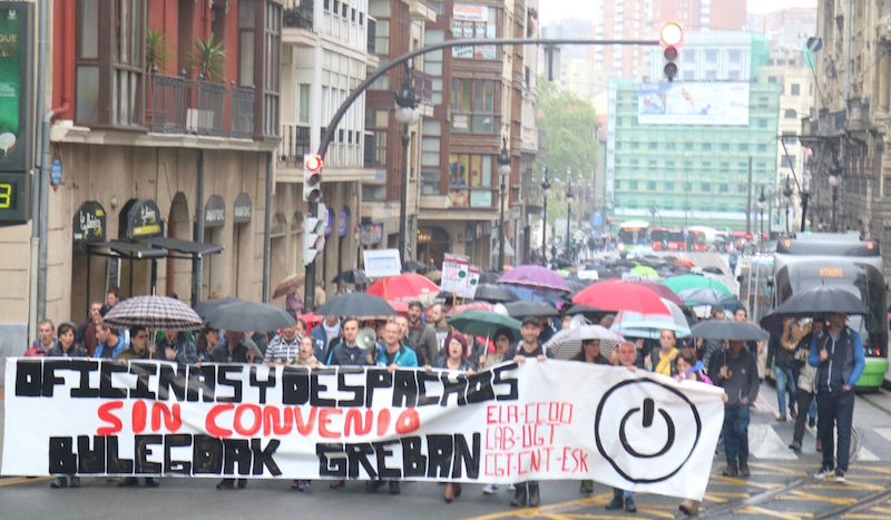 Hoy 25 de abril se ha llevado a cabo el primer día de huelga en el sector de Oficinas y Despachos de Bizkaia. Había 23.000 trabajadoras y trabajadores convocadas a la misma y el seguimiento ha sido del 75%.