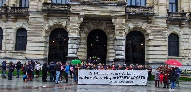 La huelga ha sido convocada en todo el sector público de la CAV por los sindicatos LAB, ELA, CCOO, ESK y Steilas bajo el lema, “Zerbitzu publikoen alde, soldatak eta enplegua hemen adostu”.