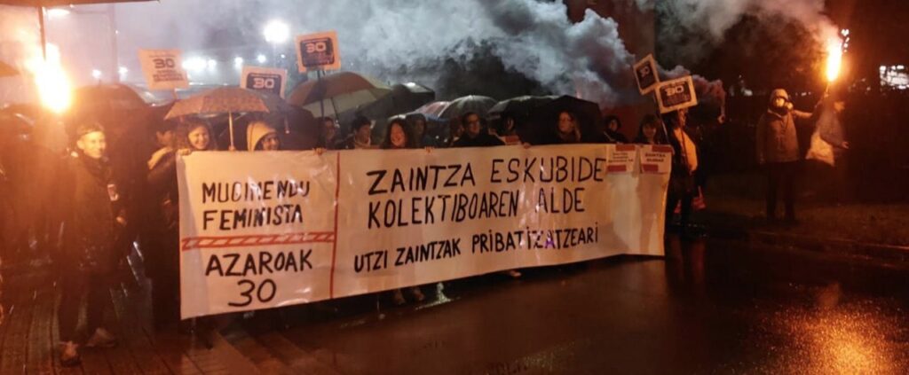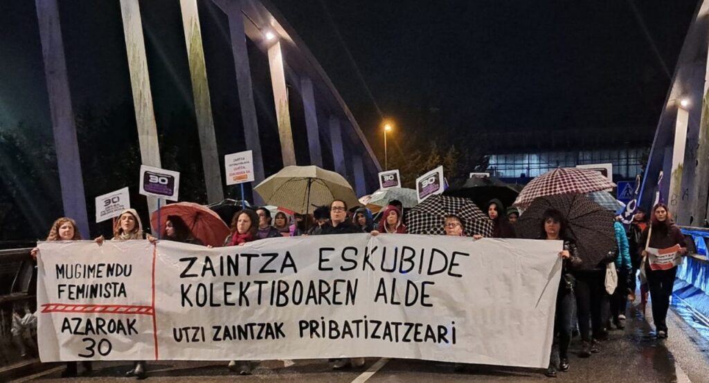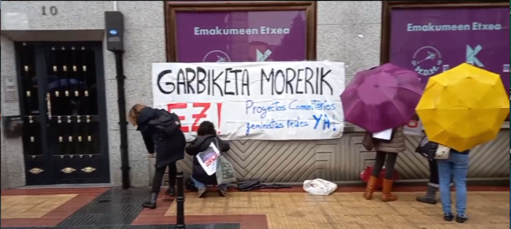 Por todo ello, al mediodía, llevaremos a cabo otras tantas movilizaciones e iniciativas pueblo a pueblo. En Bilbao, Donostia-San Sebastián, Pamplona y Vitoria-Gasteiz se llevarán a cabo iniciativas coordinadas desde los colectivos de trabajadoras domésticas y de cuidados, trayendo a primera línea las reivindicaciones de las trabajadoras de cuidados. En Pamplona nos reuniremos a las 12:30 frente a la Diputación; en San Sebastián a las 12:30 llevaremos a cabo una movilización y diferentes acciones en el Ayuntamiento; en Vitoria-Gasteiz realizaremos una movilización a las 13:00 desde Lanbide de la Calle Zumaquera; y en Bilbao las principales movilizaciones de la mañana serán a las 12.00 frente al Ayuntamiento y después a las 13.00 horas frente a la Extranjería.
