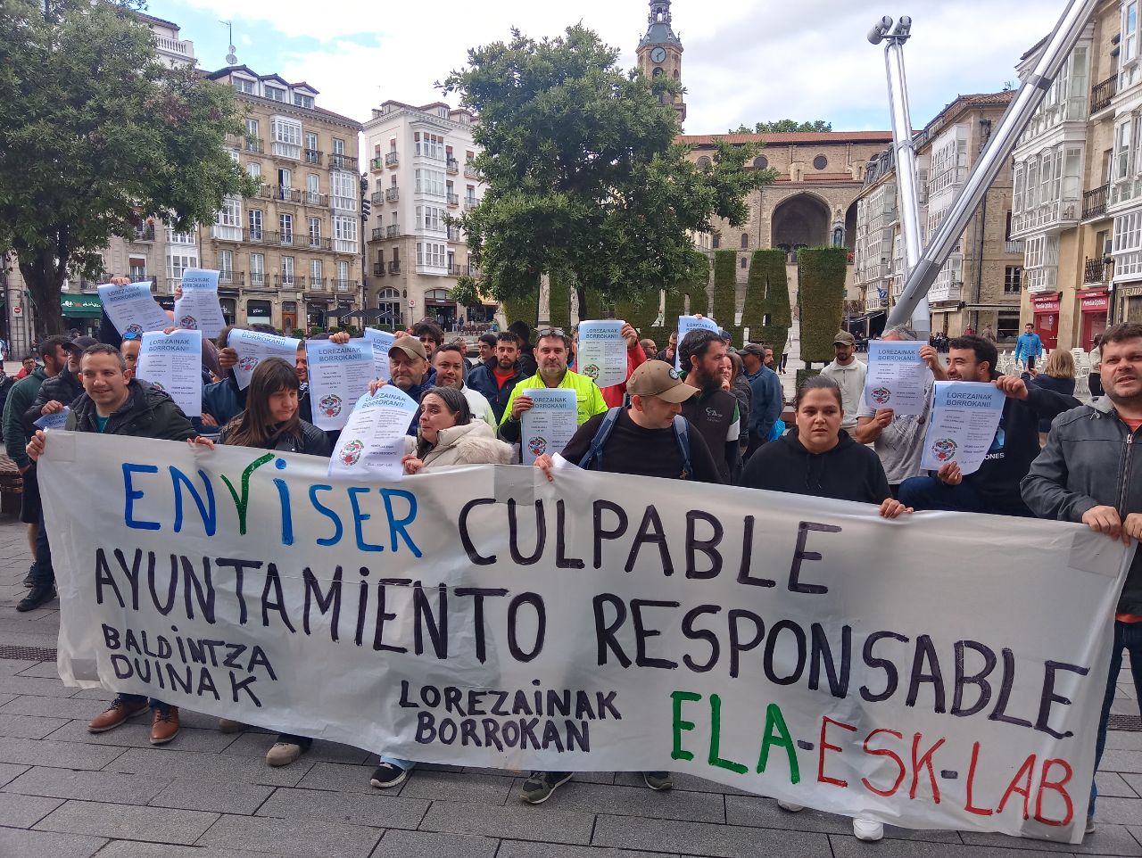 Las y los jardineros pertenecientes a Enviser, contrata del servicio de conservación de los espacios verdes de Gasteiz, se han movilizado esta tarde en la plaza de la Virgen Blanca en defensa de un convenio colectivo propio.