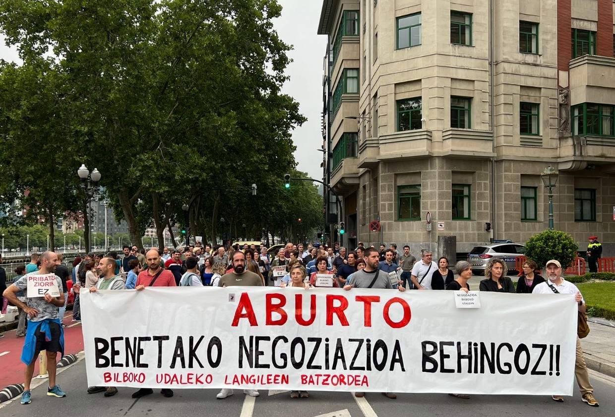 La representación de la plantilla quiere que el PNV-PSE se siente a negociar las condiciones laborales del personal al servicio del Ayuntamiento de Bilbo, no va a avalar la privatización de los servicios públicos, ni la destrucción de empleos públicos.