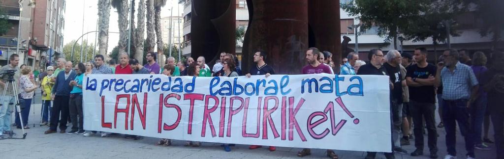 Año tras año, mes tras mes, los accidentes laborales siguen aumentando. La clase trabajadora no tenemos garantizado el derecho a la salud laboral y ni tenemos garantías de poder volver a casa con vida. Ante este desolador panorama al que nos enfrentamos día a día, queremos denunciar la actitud de los responsables institucionales por no situar el problema de la alta siniestralidad en su agenda política. Tampoco hemos escuchado de boca de las instituciones vascas ninguna denuncia de la política de precarización, sino su apoyo; ni mensajes de apoyo a las familias, al contrario, ayer mismo el Consejo General de Osalan convocó a una reunión extraordinaria para el próximo día 13 de septiembre cuyo único punto a tratar son las subvenciones que otorgan la Fundación de Riesgos Laborales, mientras la prioridad de instituciones, patronal, CCOO y UGT es repartirse el dinero que dicen que van a destinar a hacer prevención . La realidad es que los y las trabajadoras estamos absolutamente solas e indefensas, las administraciones públicas hacen dejación de sus funciones y no realizan un control real sobre las empresas ni hay sanciones ejemplarizantes. Quedan para repartirse el dinero.