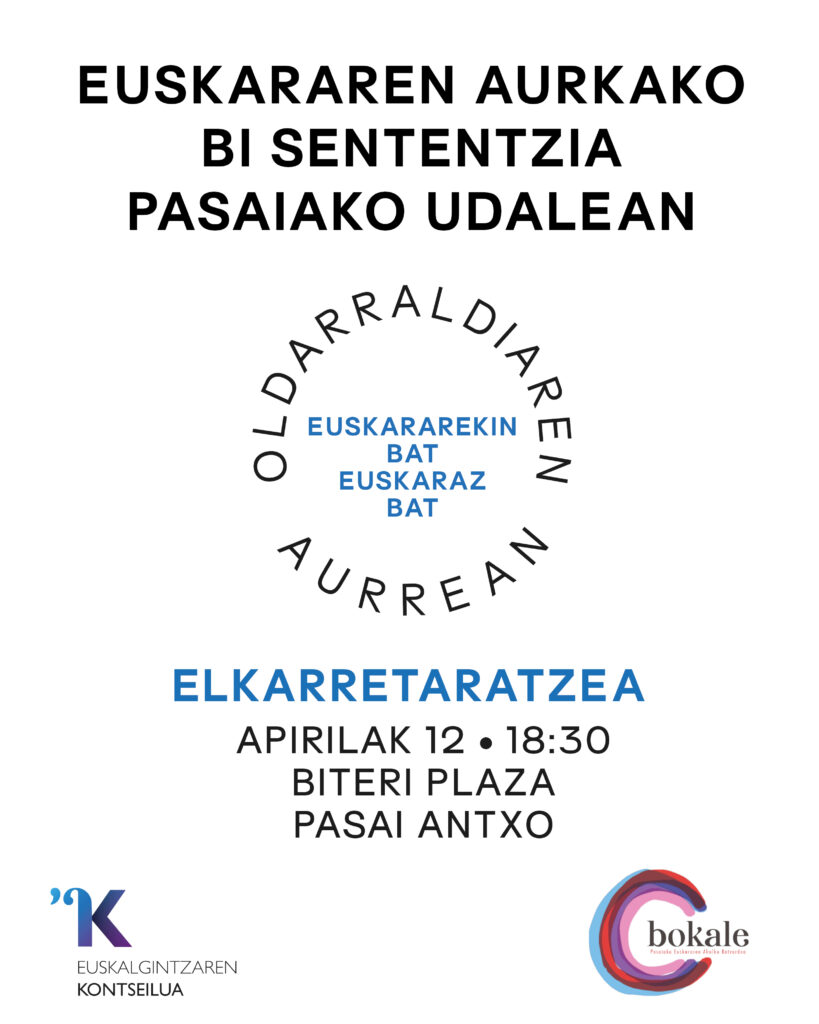 Ante ello, desde el sindicato LAB denunciamos rotundamente estas dos sentencias y hacemos un llamamiento a las movilizaciones que se han convocado en respuesta a las mismas. Así, el 12 de abril nos reuniremos en la Plaza Biteri de Pasai Antxo a las 18:30 horas, organizado por Euskalgintzaren Kontseilua y Bokale. Asimismo, LAB también participará mañana, día 11, en la movilización que los trabajadores y las trabajadoras del Ayuntamiento de Pasaia llevarán a cabo a mediodía.