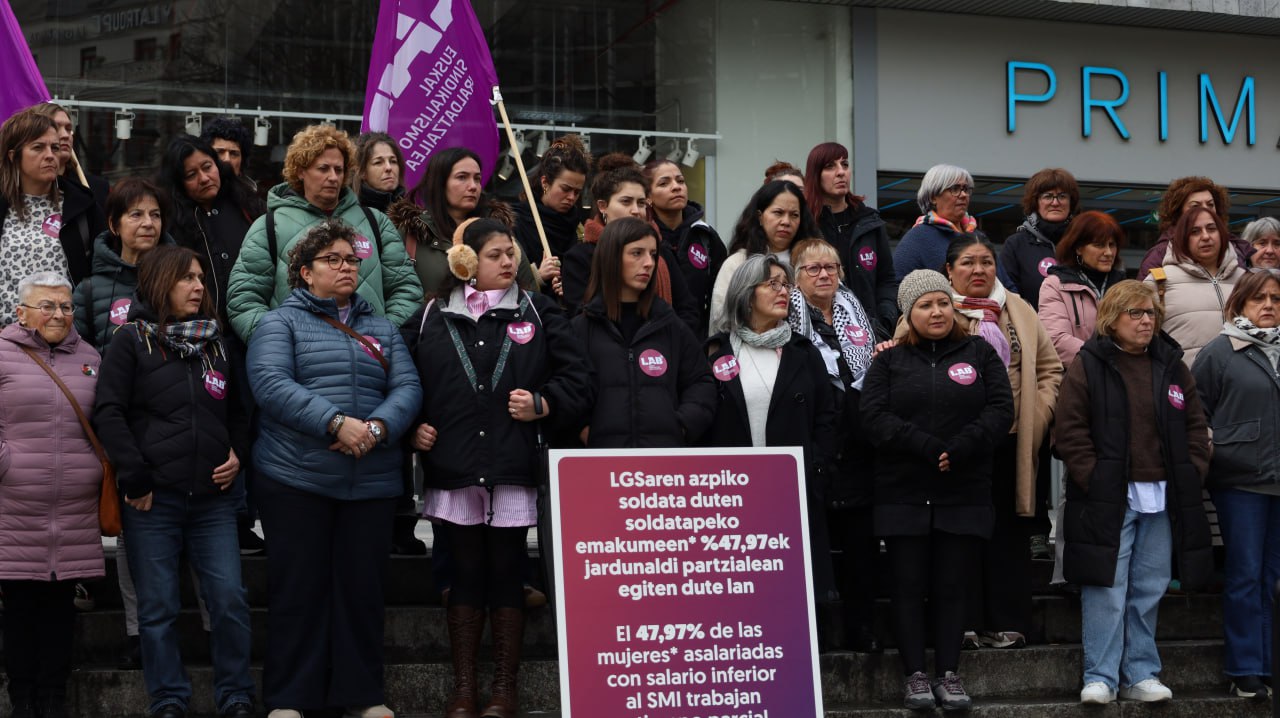 LAB ha denunciado en Bilbo y en Iruñea que los sectores con salarios más bajos están feminizados y racializados y, para acabar con esta «injusticia», ha reiterado el llamamiento a la huelga general del 17 de marzo en defensa de un salario mínimo propio y digno.