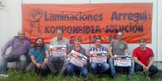 Hoy 22 de abril, una representación de la dirección del sindicato LAB, encabezada por su secretaria general Ainhoa Etxaide, ha acudido a apoyar a la plantilla de Laminaciones Arregui que está inmersa en una larga lucha. Hace tres años, justo cuando la dirección de la empresa presentó el primer expediente de regulación, fue cuando las y los trabajadores iniciaron su lucha contra los despidos. Han sido años duros, la empresa ha intentado conseguir sus objetivos a través de acoso sindical y presiones. Por su parte, la plantilla ha utilizado todos los instrumentos que tenía en su mano para impedir los despidos: huelga indefinida, movilizaciones permanentes…