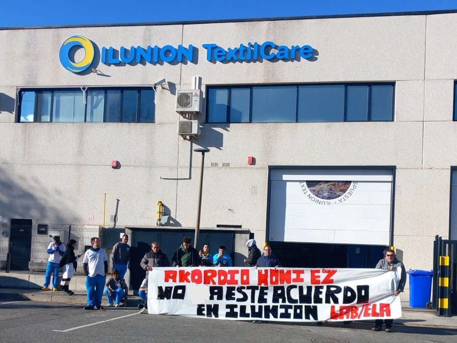 A convocatoria de los sindicatos LAB y ELA, trabajadores y trabajadoras de las plantas de Beriain y Noain de Ilunion, centros especiales de empleo pertenecientes a la Fundación ONCE y que ofrecen servicios de lavandería industrial, realizaron ayer sendas concentraciones para denunciar que en la mesa negociadora del nuevo convenio se ha dejado de lado a estos sindicatos. LAB no firmará ese acuerdo porque piensa que no recoge las principales necesidades y reivindicaciones de la plantilla.