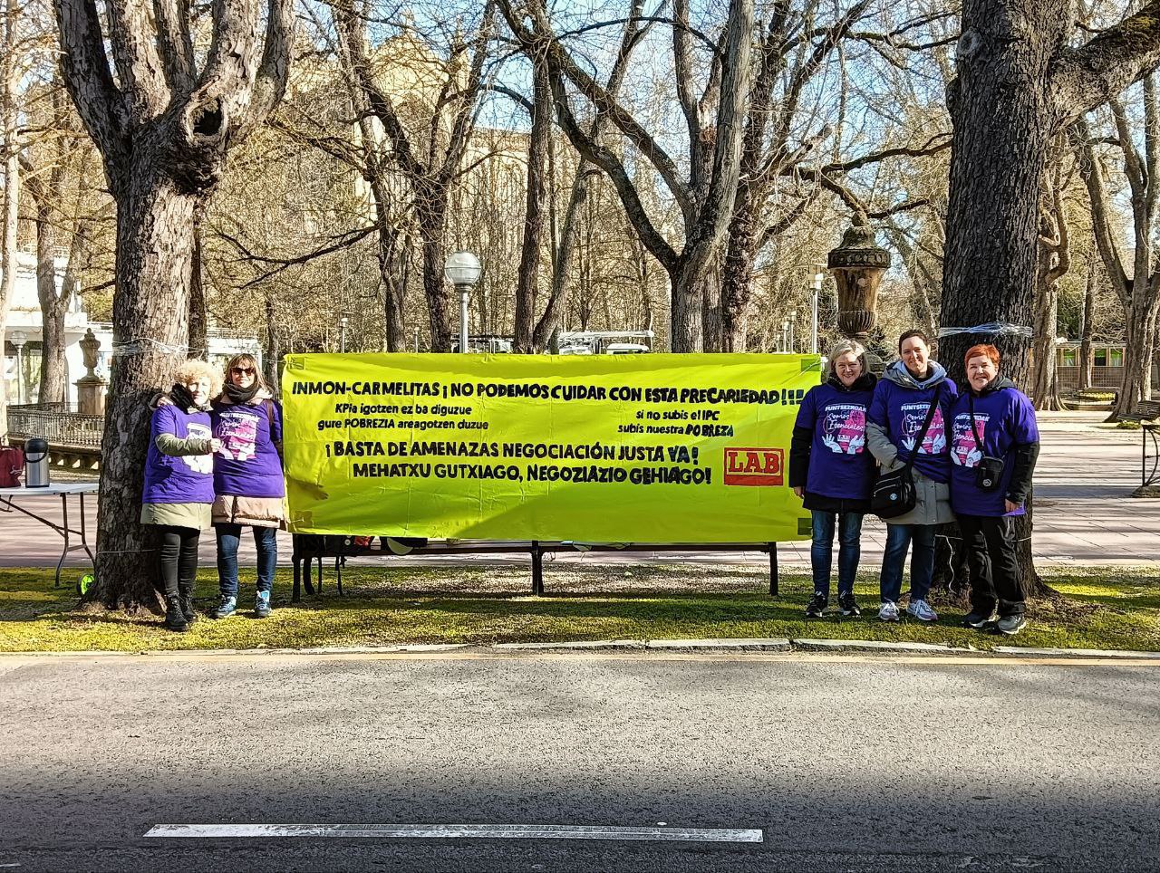 Desde las 10 de la mañana, las trabajadoras de la residencia Inmon Carmelitas de Gasteiz han realizado numerosas actividades para denunciar que tienen el convenio bloqueado. Así, han compartido hamaiketako con aquellas personas que se han acercado a apoyarlas, han usado la imaginación contra el poder en un taller de material de difusión y reivindicativo (pancartas, carteles, chapas…), y durante toda la mañana han mantenido un punto de información frente al centro de trabajo.