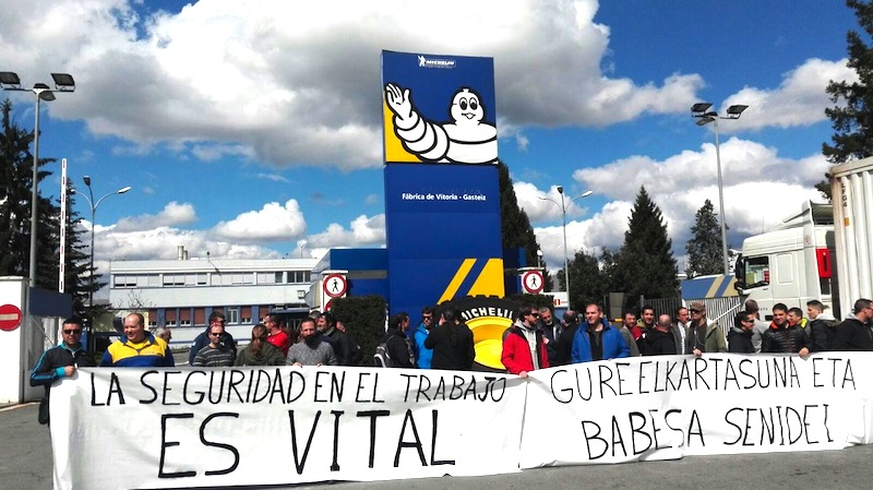 Elkarretaratzea egin dute gaur Gasteizen, Michelingo enpresa batzordeak deituta. Hain zuzen ere, joan den asteartean hildako langilea izan dute gogoan, eta lantegiko atarian bi orduz prortesta egiteko deia egin dute, 13:00etatik 15:00etara. Martxoak 30erako, berriz, bi orduko lan uztera deitu dugu LAB, ELA eta ESK sindikatuok, 13:00etatik 15:00etara ere.