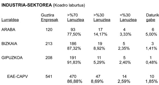 Greba %30etik gora egin den enpresa industrialak 47dira, %8,69a.