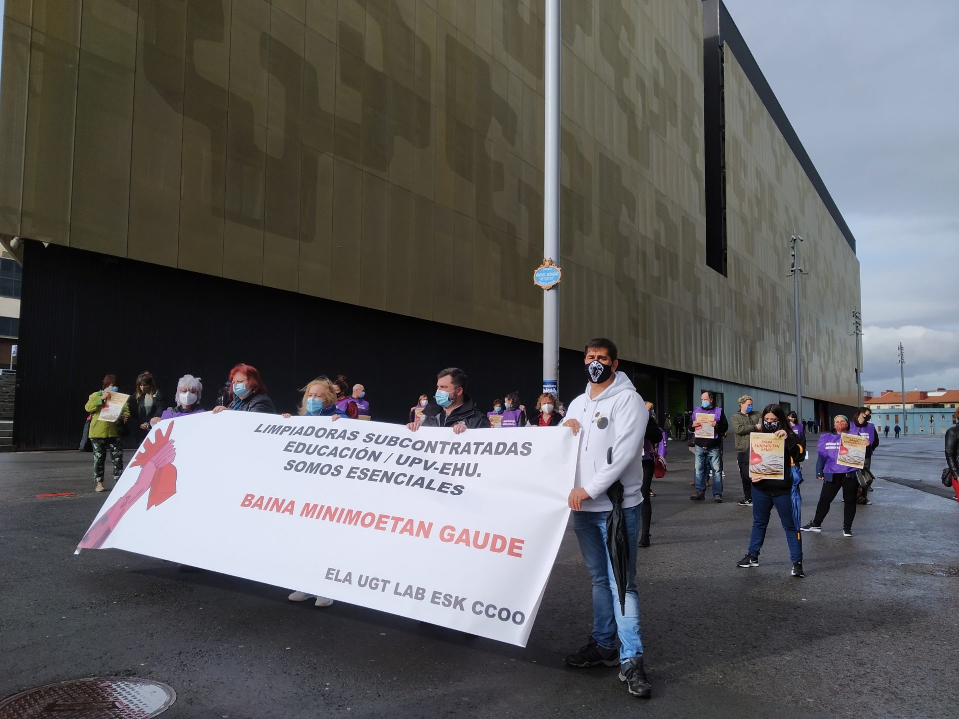 La situación no ha mejorado para las limpiadoras subcontratadas de Educación de la CAV y de la UPV. Así lo han denunciado en las movilizaciones realizadas en Gasteiz, Bilbo y Donostia. «Si somos esenciales, ¿por qué se nos menosprecia?», han preguntado, al tiempo que han anunciado huelgas para el 19 y 25 de noviembre.