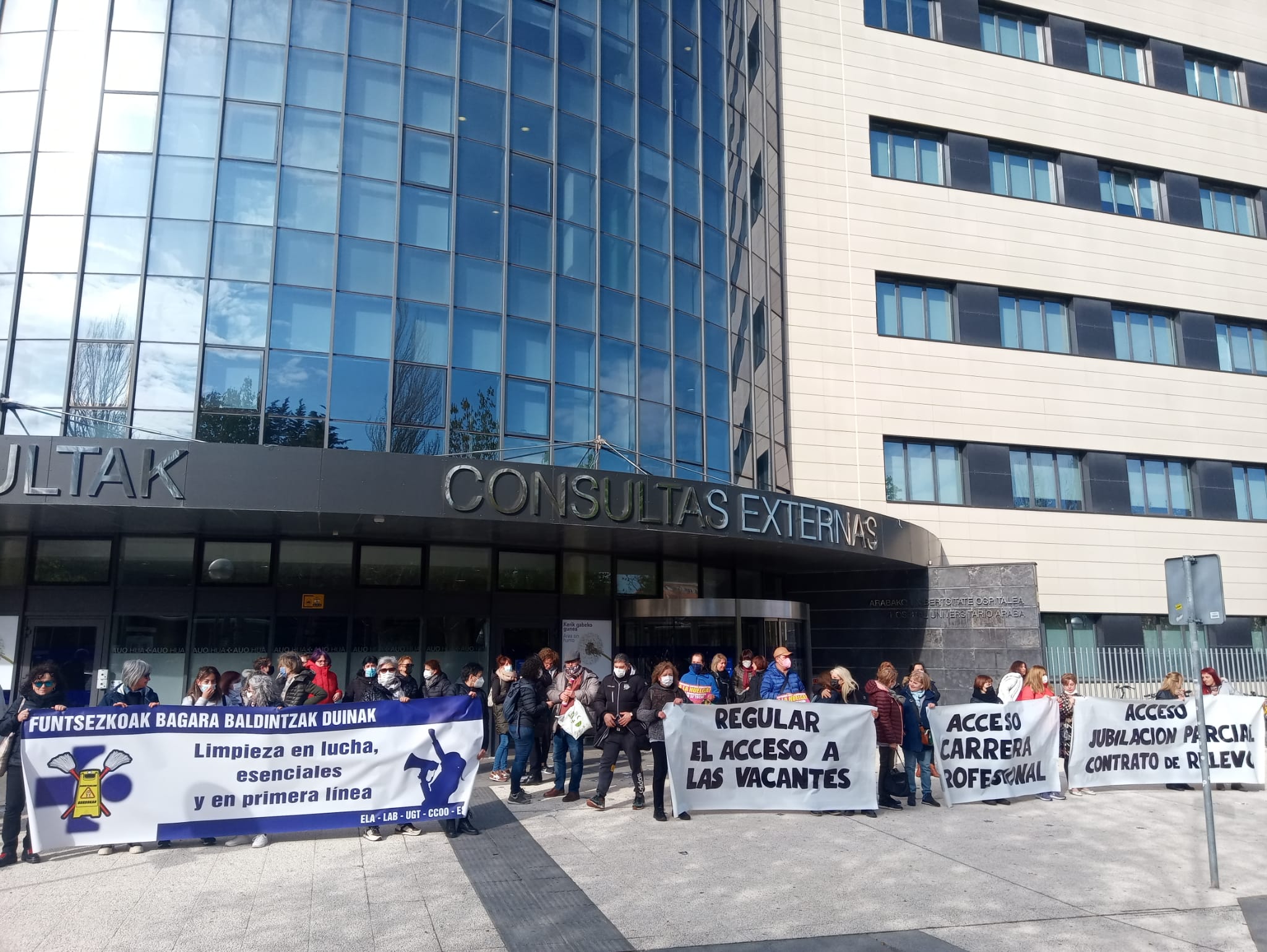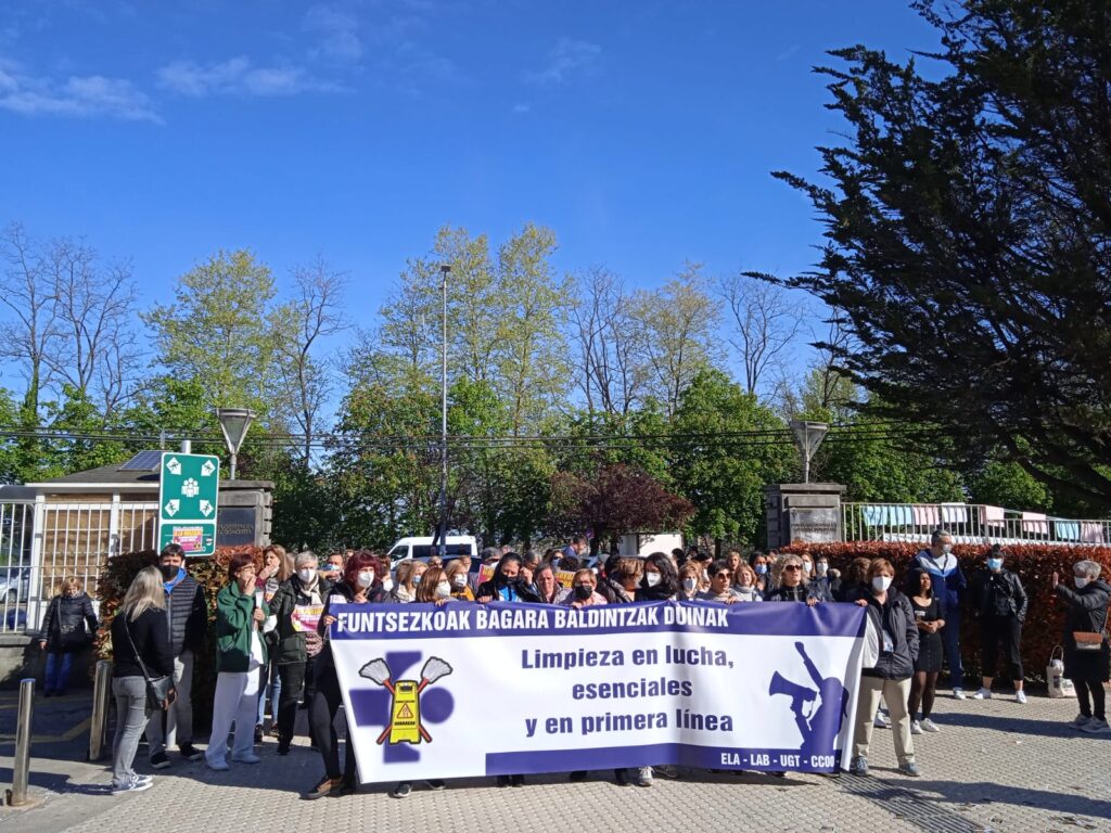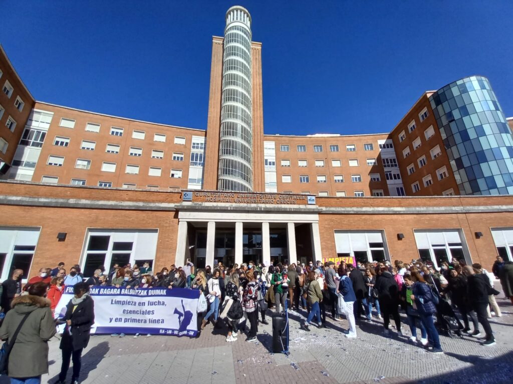 Las trabajadoras de limpieza subcontratadas por Osakidetza han convocado huelga para los días 7, 8 y 9 de abril, a llamamiento de los sindicatos LAB, ELA, UGT, CCOO y ESK. Así, durante la primera jornada de huelga, hemos llevado a cabo movilizaciones en Araba, Bizkaia y Gipuzkoa en defensa de un nuevo convenio y a favor de la homologación. Concretamente, hemos realizado sendas concentraciones en los hospitales de Txagorritxu, Cruces y Donostia.
