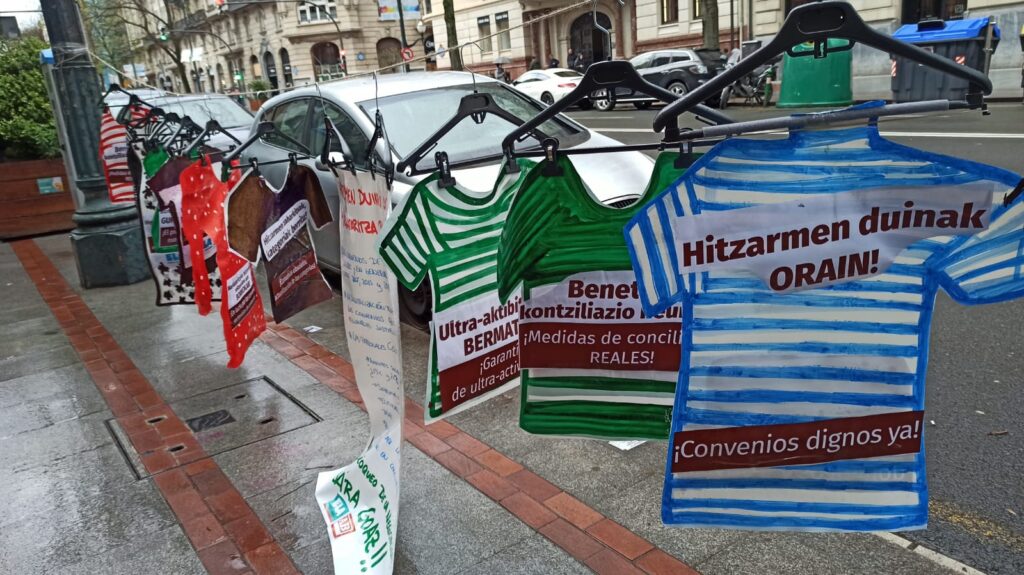 Ayer finalizaba el plazo de la prórroga de la ultraactividad del comercio en general. Anteayer salíamos de la negociación de comercio del textil con las posturas más alejadas aún. La patronal nos quiere imponer elementos regresivos en nuestros convenios: aumentos salariales muy por debajo de IPC, eliminar la antigüedad, trabajar los sábados tarde de verano… Y a todo ésto se le suma ahora que CECOBI y Bizkaidendak plantean no complementar las bajas hasta el 100% desde el primer día, penalizando así ponernos enfermas. Argumentan que el absentismo es muy alto en nuestro sector. ¿Cómo no va a ser alto, si nos obligan a vivir en constante estado de ansiedad? ¿Con jornadas que no dan para llegar a fin de mes, con más funciones y menos trabajadoras? ¿Sin saber si el ERE que acabamos de pasar es el último?