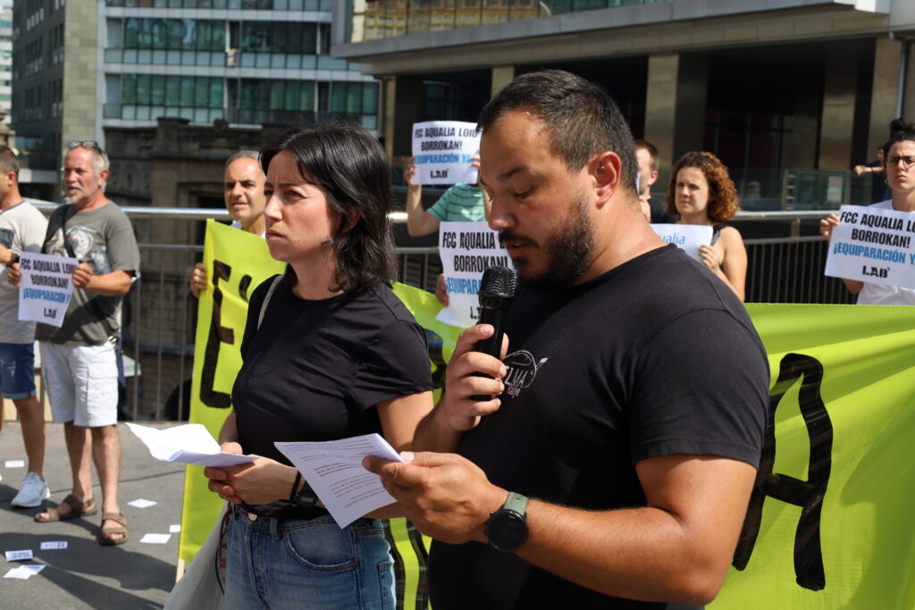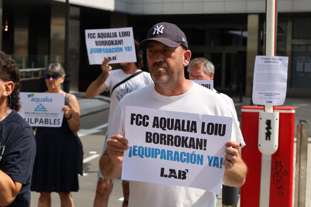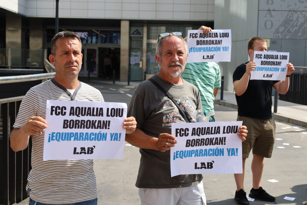 La empresa FCC Aqualia, situada en Loiu, es una subcontrata del Consorcio de Aguas de Bilbao Bizkaia (CABB) y se encarga de ofrecer el servicio de abastecimiento de agua a 150.000 habitantes en Uribe Kosta, Txorierri y Mungialdea. Sus trabajadores y trabajadoras, que están luchando por mejorar sus condiciones laborales, han estado en huelga desde el pasado 4 de junio. Hasta el momento, no se ha llegado a un acuerdo con la empresa y como el conflicto siguen sin resolverse, hoy han iniciado una huelga indefinida. De esta forma, han realizado una movilización frente a la sede del CABB en Bilbao.