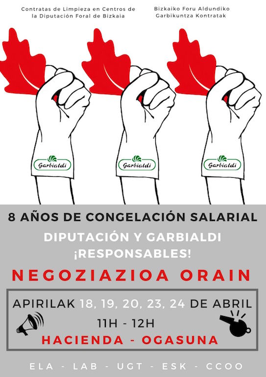 El dia 5 de diciembre pusimos en marcha una serie de movilizaciones semanales con la intención de desbloquear la negociación del Convenio entre Garbialdi y los y las trabajadoras que limpian los centros de la Diputación Foral de Bizkaia.