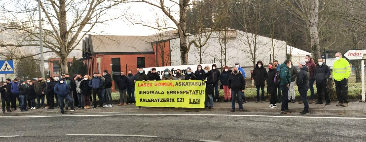Concretamente, denunciamos lo ocurrido en la Laser Goiken, empresa con 70 trabajadoras y trabajadores ubicada en Olaberria y perteneciente al Grupo Laser Ken, que ha despedido a 4 trabajadores por querer llevar a cabo elecciones sindicales. Realizar elecciones sindicales es un derecho fundamental y así lo decidió la plantilla. La empresa, en cambio, no ha visto con buenos ojos la decisión adoptada por los y las trabajadoras y ha presionado, acosado y despedido a 4 trabajadores como represalia para impedir la organización de los y las trabajadoras.