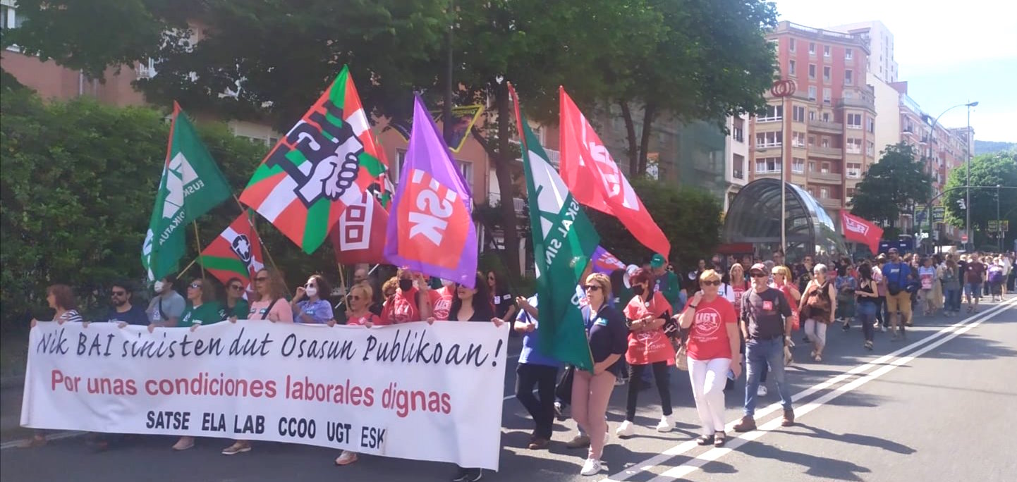 Los sindicatos LAB, SATSE, ELA, CCOO, UGT y ESK hacemos, una vez más, un llamamiento a Osakidetza y al Departamento de Salud para que abandonen la senda de la imposición y la propaganda y recuperen el diálogo y la negociación para poner en marcha soluciones estructurales y de calado. Sin duda, es el momento de reforzar las sanidad pública.