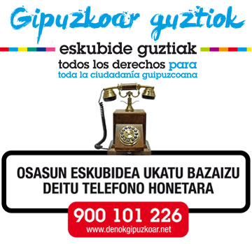 Momentu honetan, Krisi egoera aitzakiapean, oinarrizko eskubide sozialak urratzen ari dira, aldi berean, zerbitzu publikoaren desmantelazioa ematen ari da eta horrekin batera etengabeko herritarron eskubideen urraketa ematen da, egoera larrienean dagoen pertsonei bereziki eraginez, azken hilabete hauetan osasun eskubidearen esparruan gertatu den bezala. Ekainean, 114/2012 Dekretua argitaratzearekin batera, bertan “erregularizatu gabeko” migratzaileei eta osasun txartela ez dutenei urtebeteko errolda agiria exijitzen zaie,ondorioz pertsona ugari osasun prestaziorik gabe utziko ditu. Egun, egoera nahasi honetan aurreko agintariek esandakoa ez dute bete eta bertan gauden eragileok egoera horren jarraipena egingo dugu gure lurraldean dagoen egoera zehatza jakiteko. Horretarako, egoera honen inguruko informazioa biltzeko tresna bat jarriko dugu martxan. Tresna hau telefono DOAKO bat da eta HONEN BITARTEZ urraketen berri eman ahalko du pertsona orok, beren anonimotasuna mantenduz. Telefono hau bideratua dago osasun eskubidea ukatu zaienei eta baita halako kasuen berri izan dutenei ere. 24 orduz egongo da erabilgarri, goizetik pertsona batek harrera egingo du eta erantzungailu zerbitzu bat martxan jarriko da arreta osatzeko. Bestetik, denokgipuzkoar.net. web orrian ere aukera egongo da salaketa jartzeko.