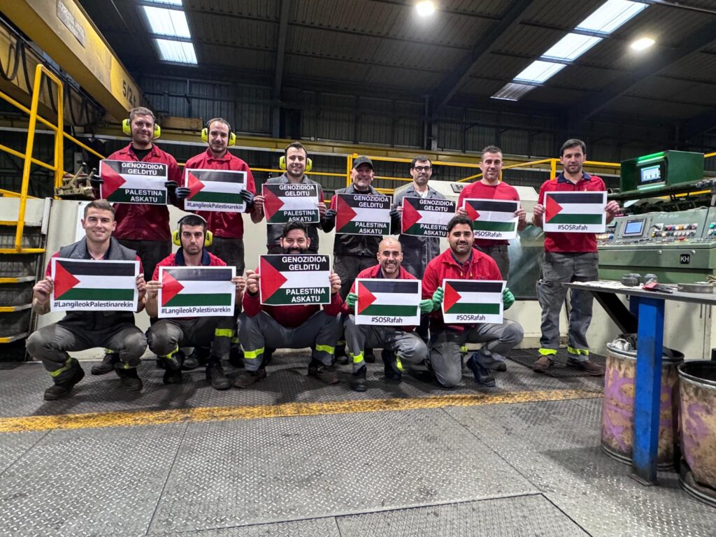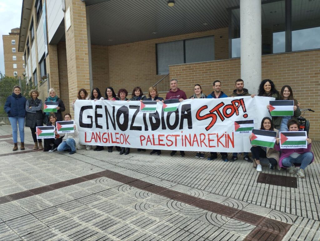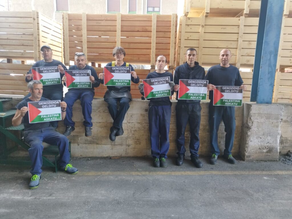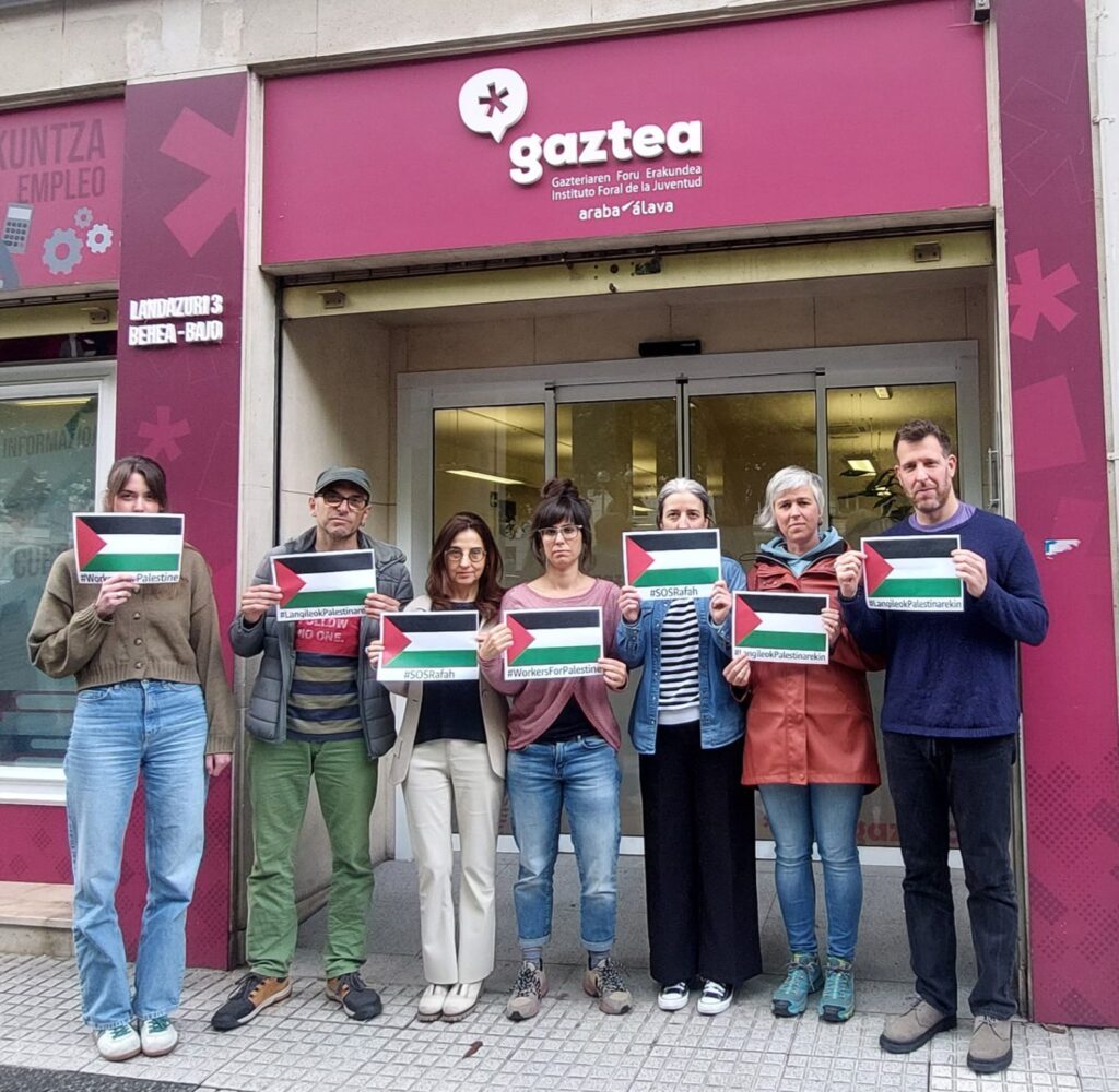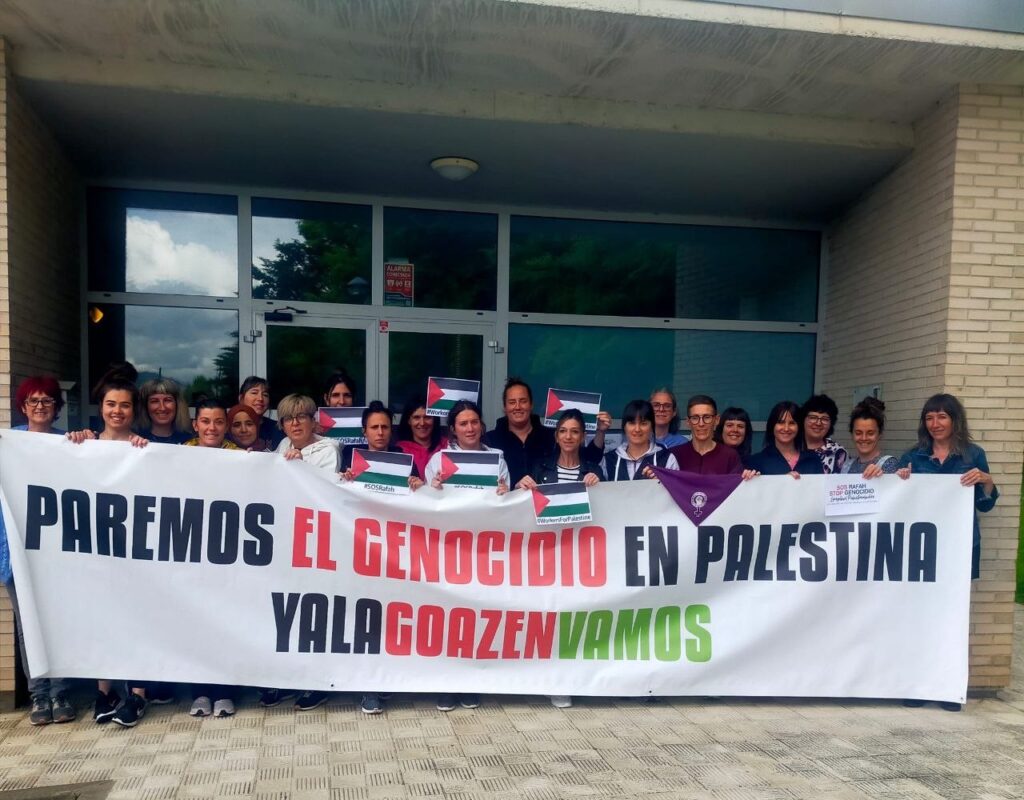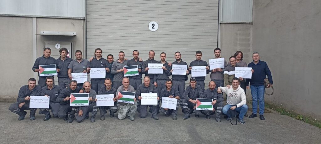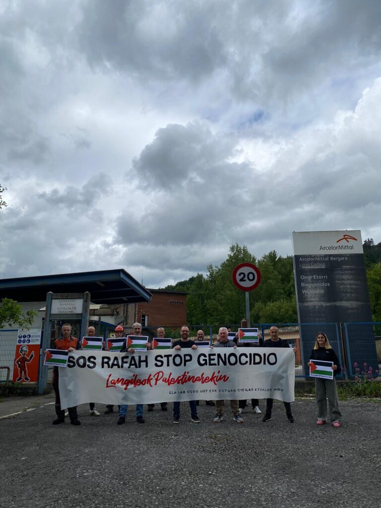 En el marco de las iniciativas convocadas para hoy bajo el lema S.O.S. Rafah, STOP genocidio, en numerosos centros de trabajo de Euskal Herria hemos mostrado nuestra solidaridad con la ciudadanía palestina y hemos exigido la inmediata paralización del cruel genocidio que Israel está llevando a cabo.