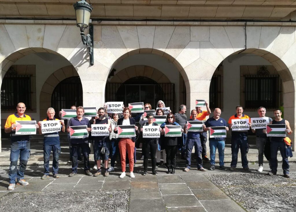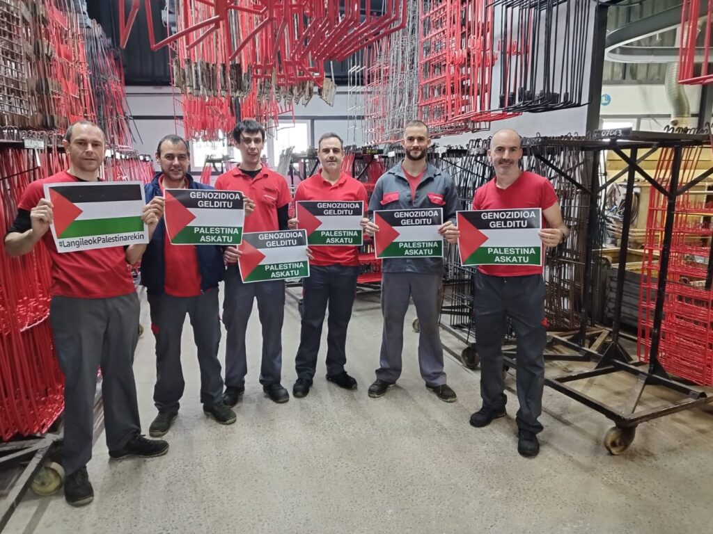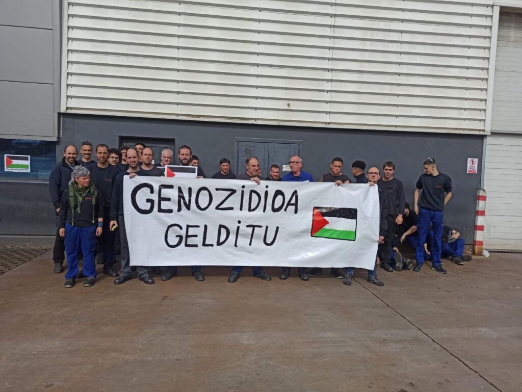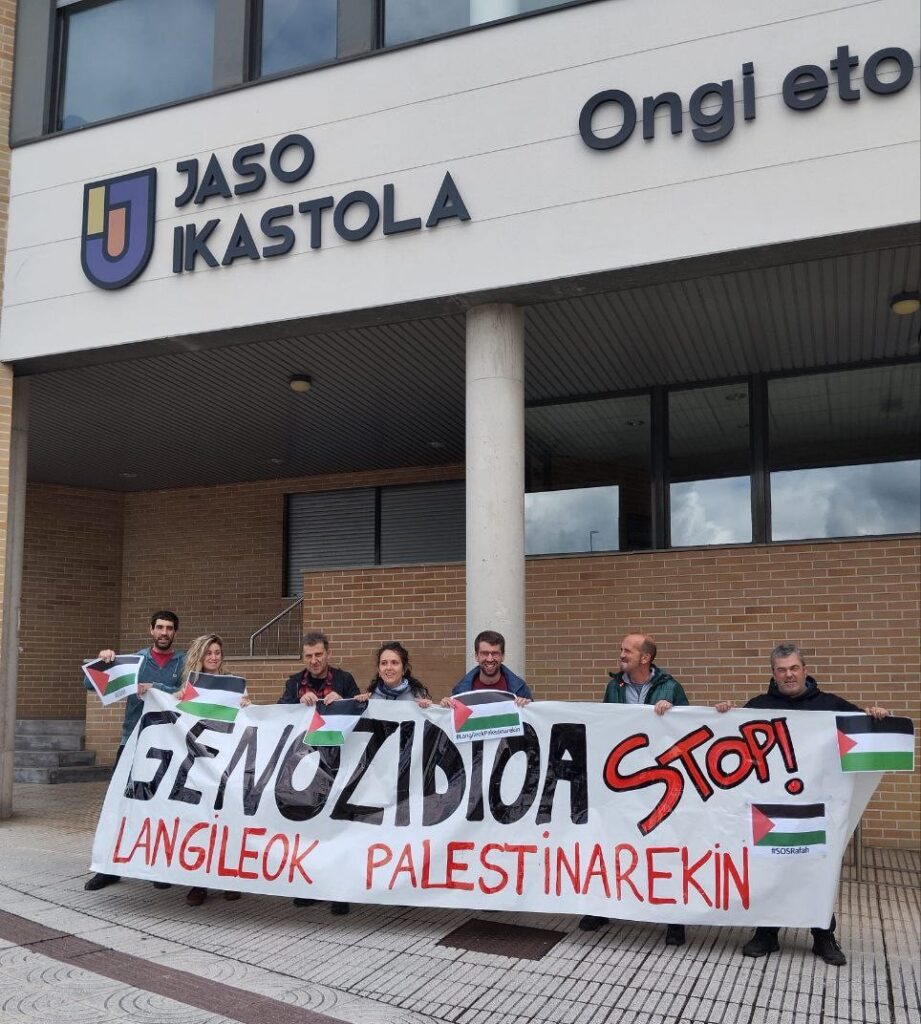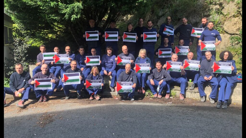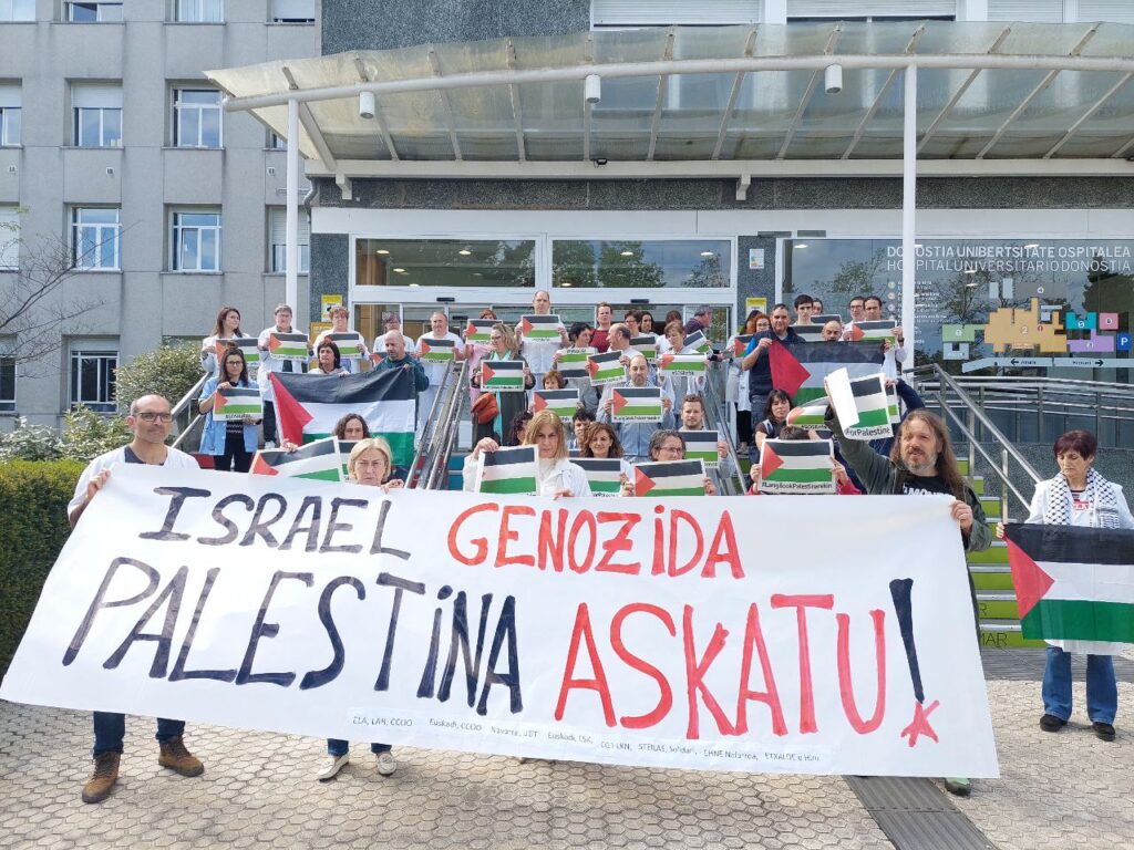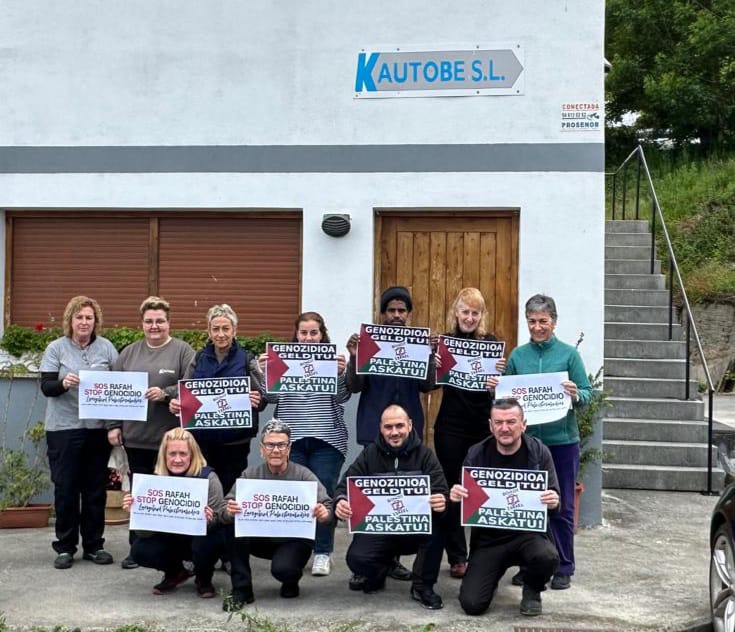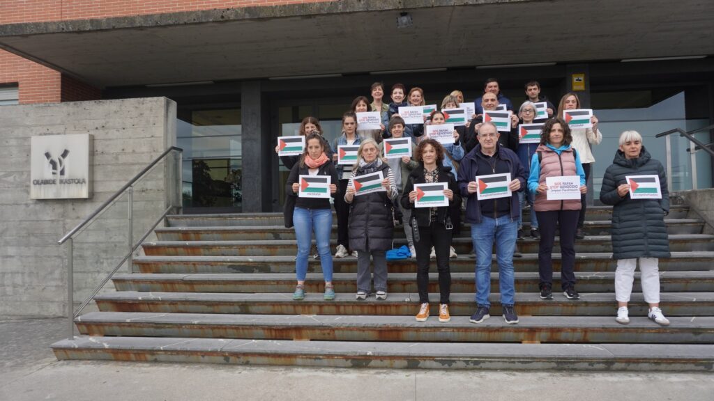 En el marco de las iniciativas convocadas para hoy bajo el lema S.O.S. Rafah, STOP genocidio, en numerosos centros de trabajo de Euskal Herria hemos mostrado nuestra solidaridad con la ciudadanía palestina y hemos exigido la inmediata paralización del cruel genocidio que Israel está llevando a cabo.
