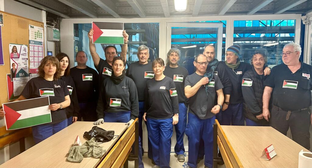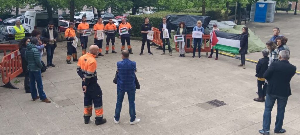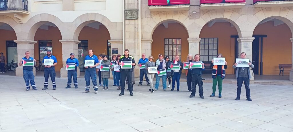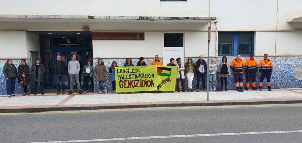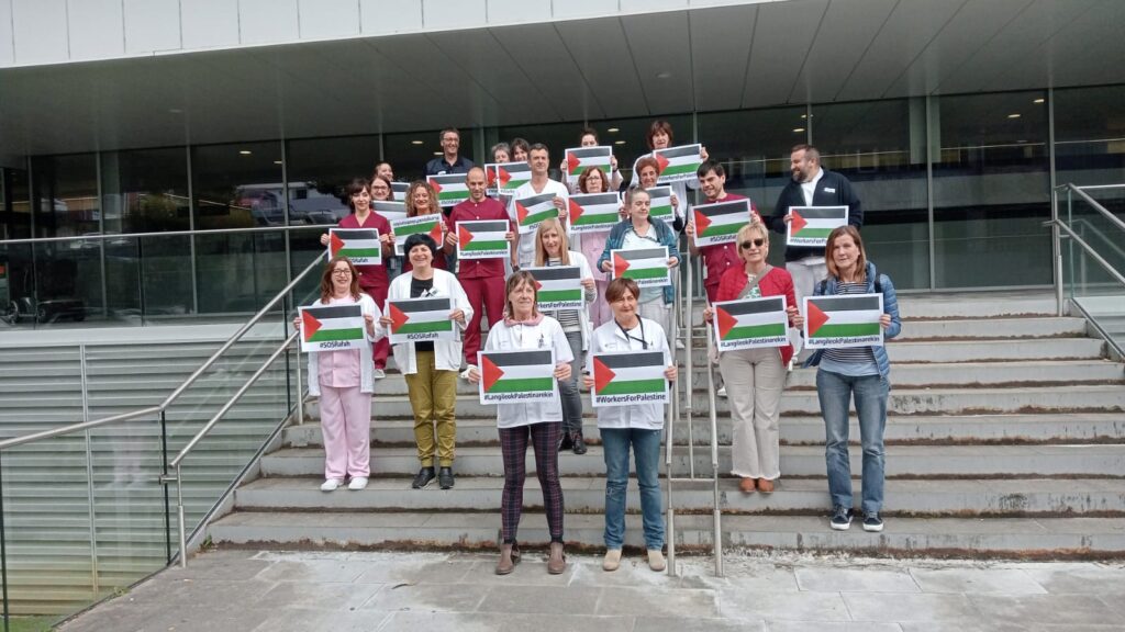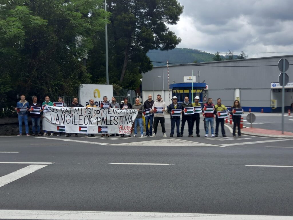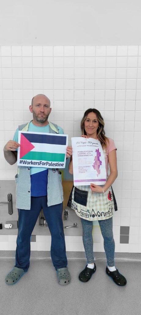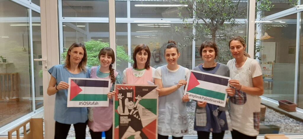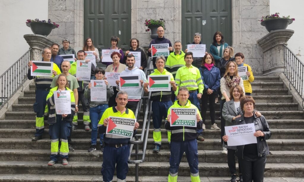 En el marco de las iniciativas convocadas para hoy bajo el lema S.O.S. Rafah, STOP genocidio, en numerosos centros de trabajo de Euskal Herria hemos mostrado nuestra solidaridad con la ciudadanía palestina y hemos exigido la inmediata paralización del cruel genocidio que Israel está llevando a cabo.