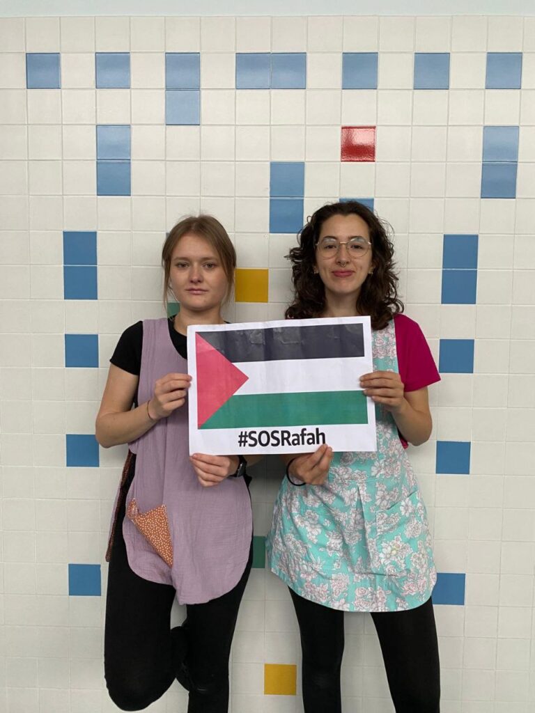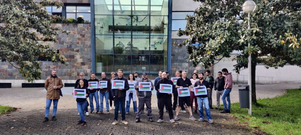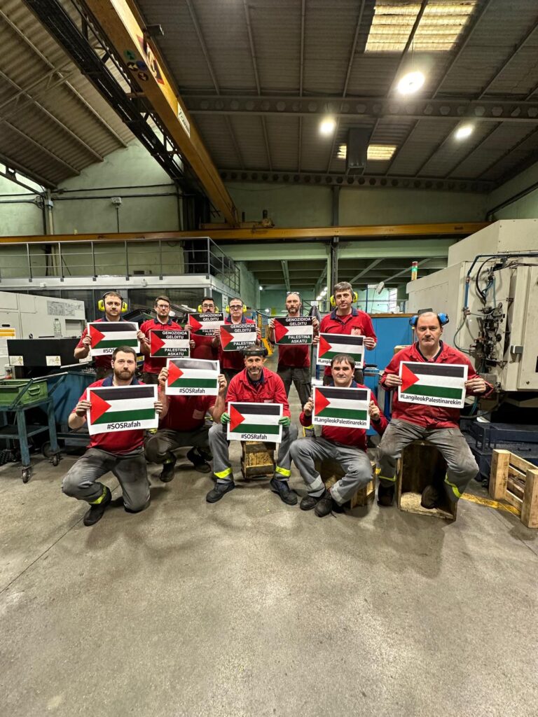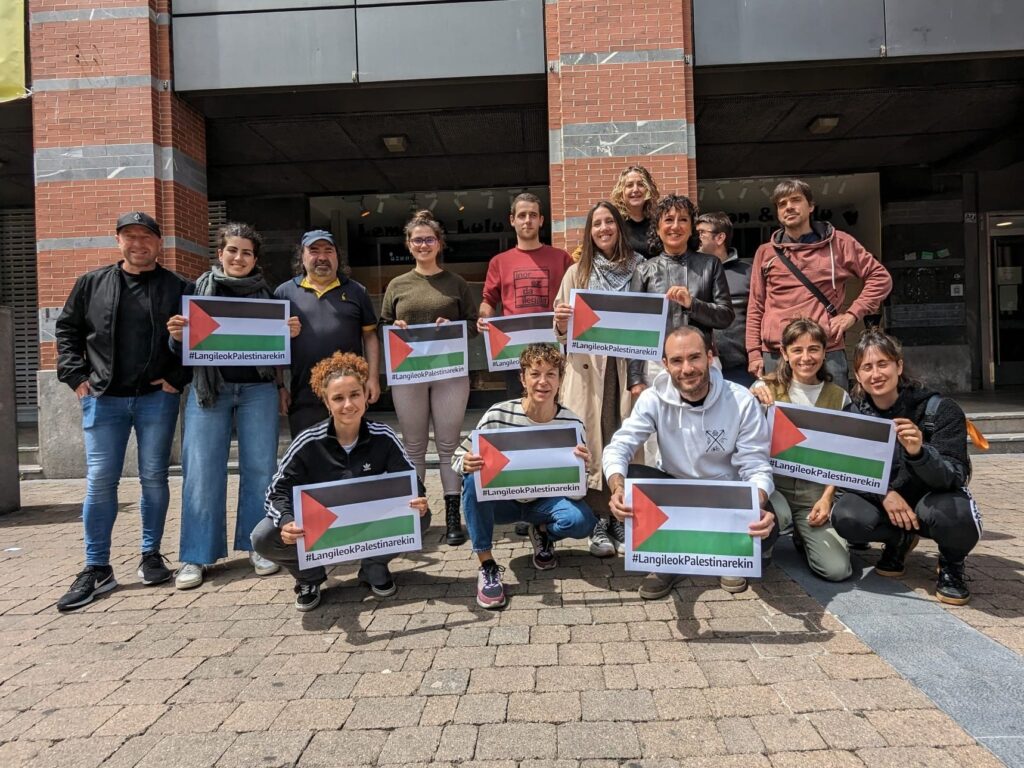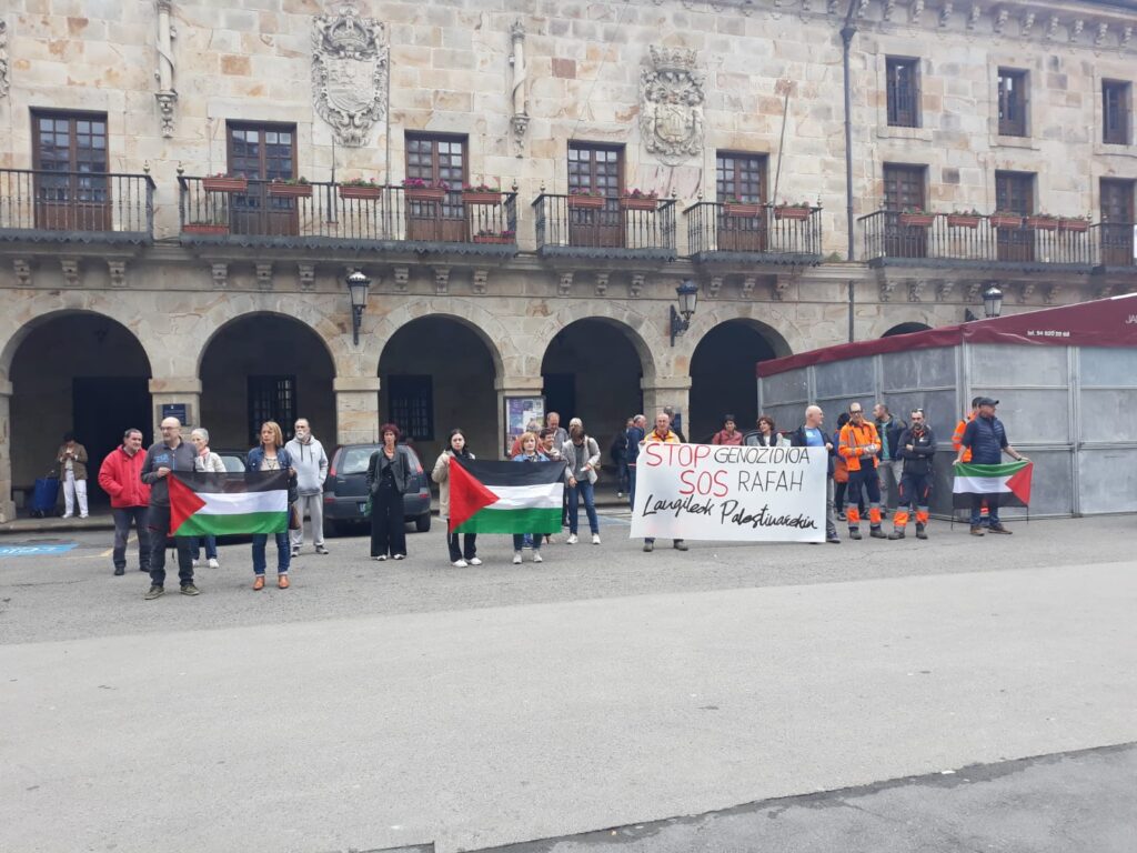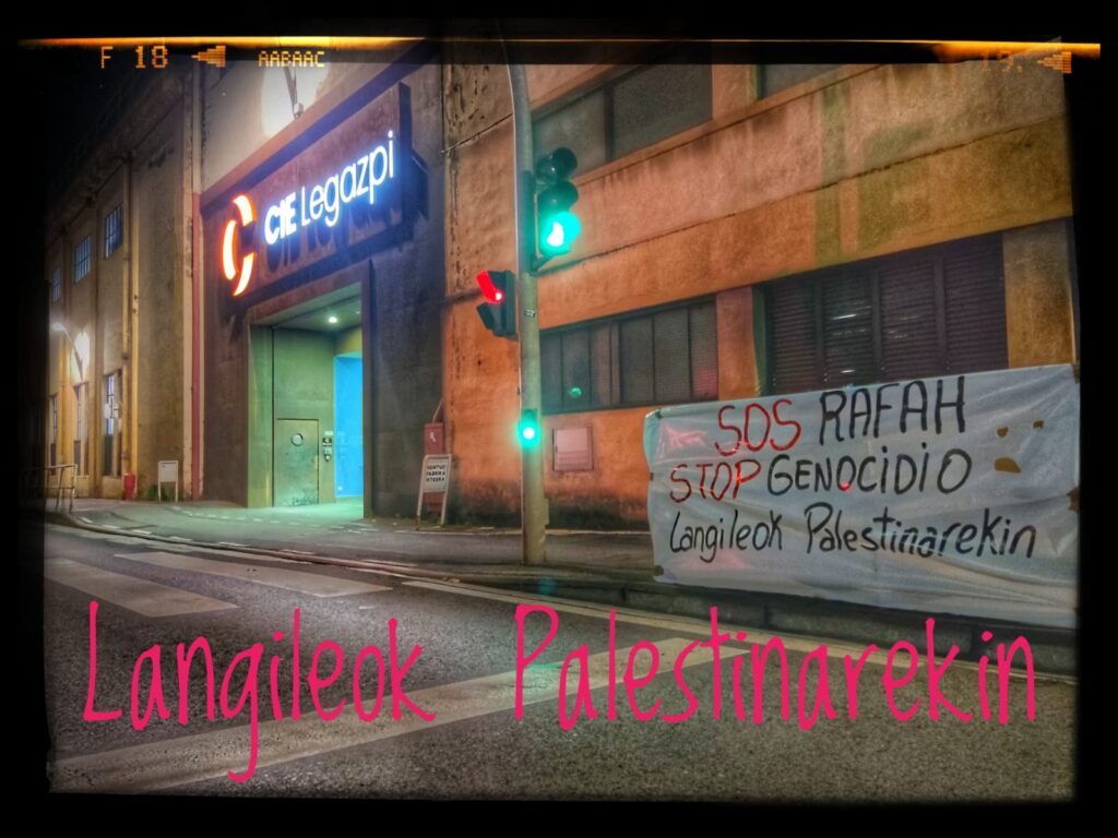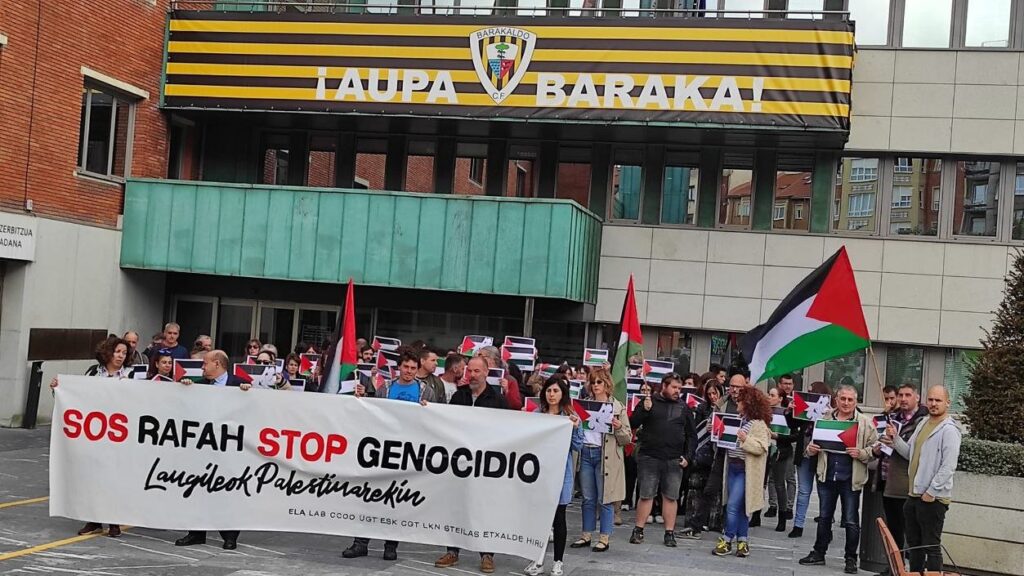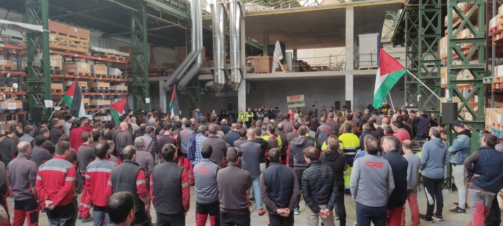 En el marco de las iniciativas convocadas para hoy bajo el lema S.O.S. Rafah, STOP genocidio, en numerosos centros de trabajo de Euskal Herria hemos mostrado nuestra solidaridad con la ciudadanía palestina y hemos exigido la inmediata paralización del cruel genocidio que Israel está llevando a cabo.