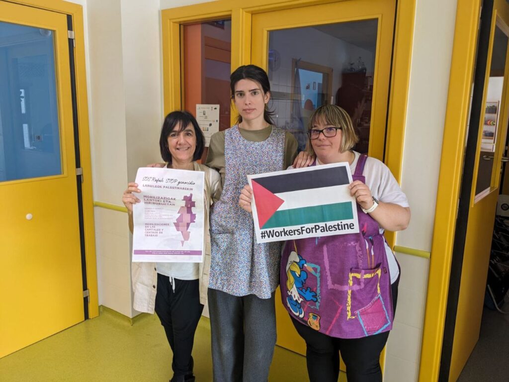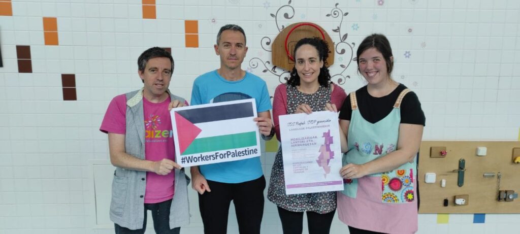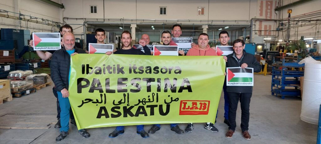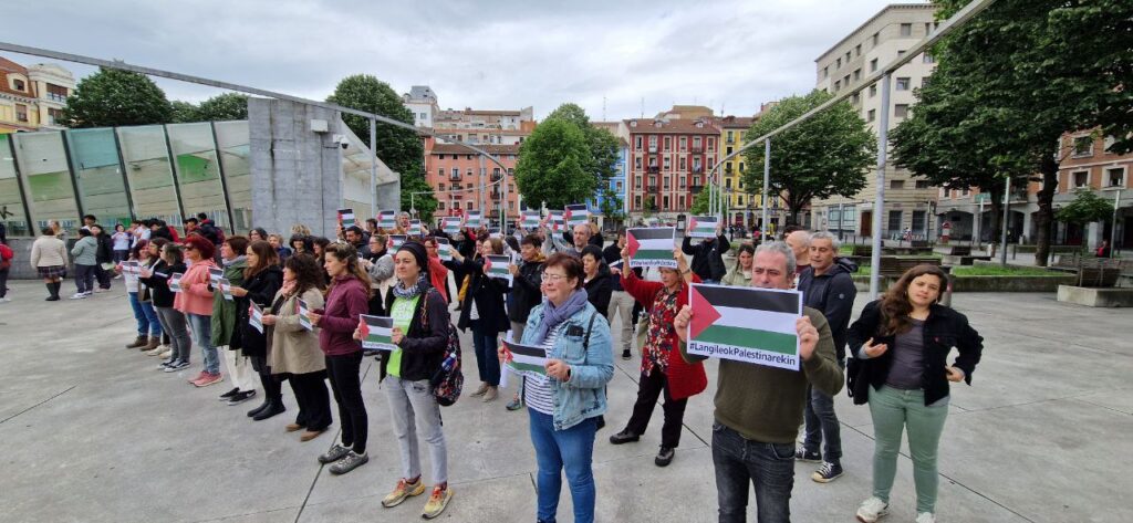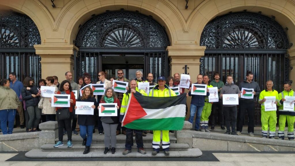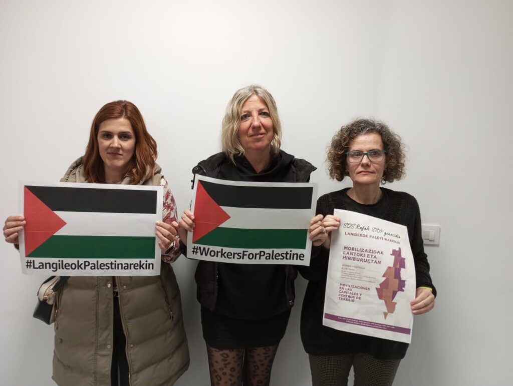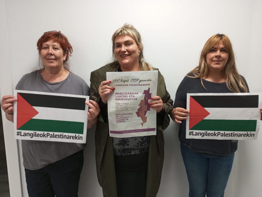 Además de mostrar nuestra solidaridad en los centros de trabajo, este mediodía realizaremos movilizaciones en las capitales de Hego Euskal Herria junto a la mayoría sindical, para mostrar que denunciamos la violencia y la grave vulneración de los derechos humanos y para gritar en voz alta que Israel debe parar la masacre de una vez por todas.