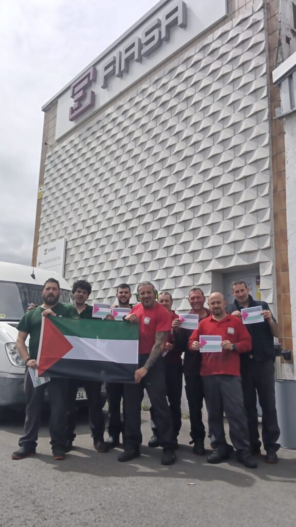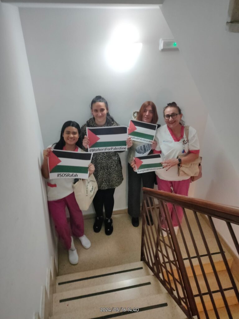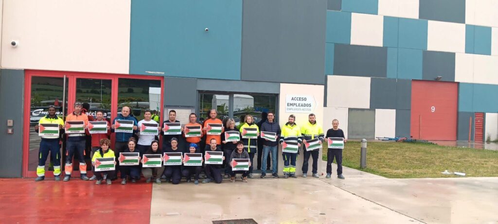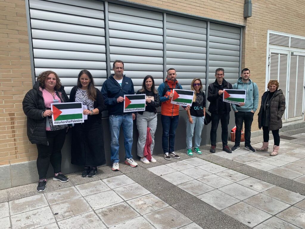 Atendiendo a las peticiones de los sindicatos palestinos, la de hoy está siendo una iniciativa para demostrar que los trabajadores y las trabajadoras estamos con Palestina, en la misma semana del 76 aniversario de la Nakba que expulsó brutalmente a miles de palestinos y palestinas de sus pueblos y casas y en la que estamos viendo la cara más cruda de la estrategia genocida de Israel durante la ofensiva en Rafah.